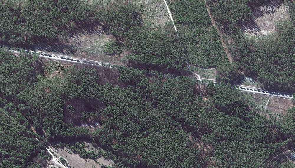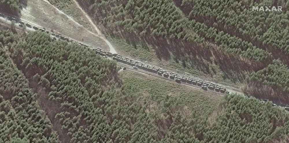 ABD merkezli teknoloji şirketi Maxar, askeri teçhizatların fotoğraflarını paylaşırken, görüntülerde Rus konvoyunun Kiev'in eteklerine yerleştiği görülüyor.