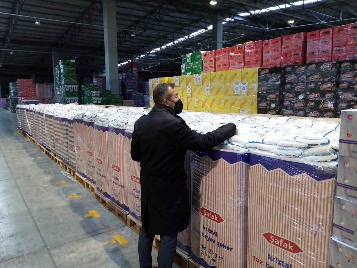 Yapılan kontrollerde markette şeker yoktu ama marketin deposu içerisine istiflenmiş paletlerde 7 bin 600 adet 5 kilogramlık, 5 bin 60 adet de 2 kilogramlık toplamda 48 bin 120 kilogramlık toz şeker bulundu.