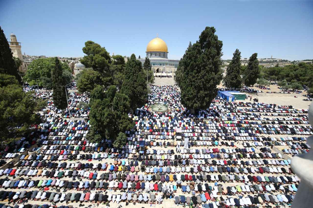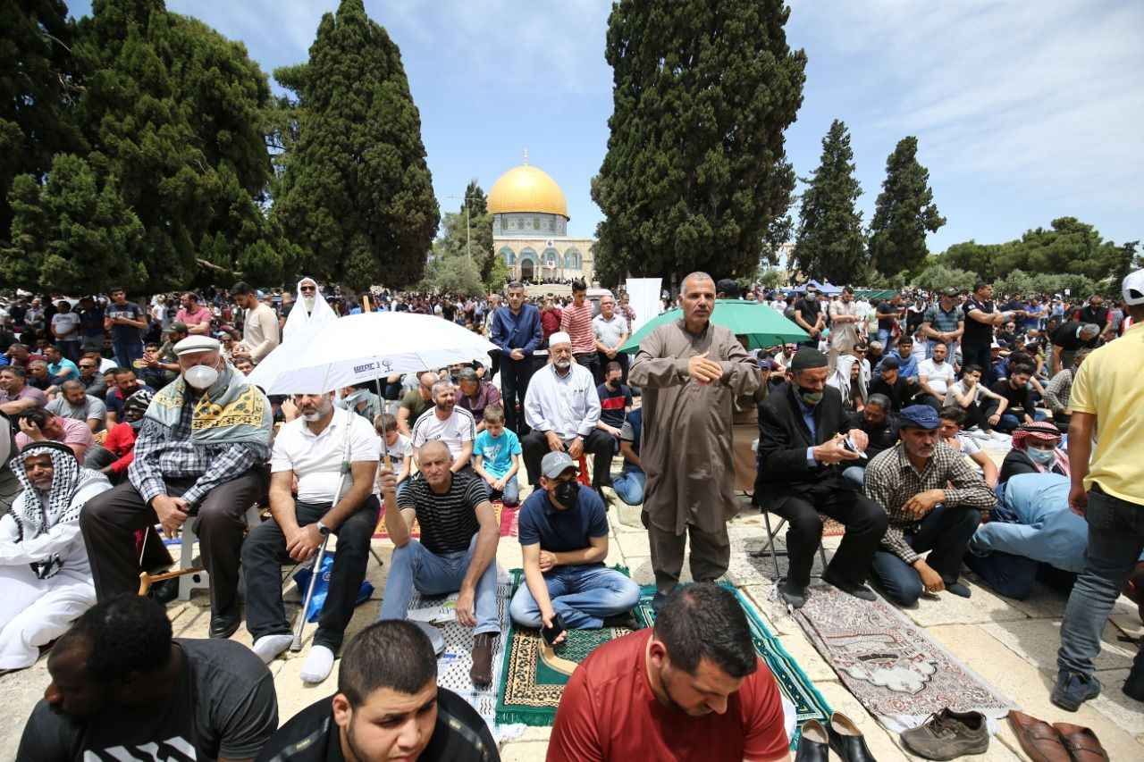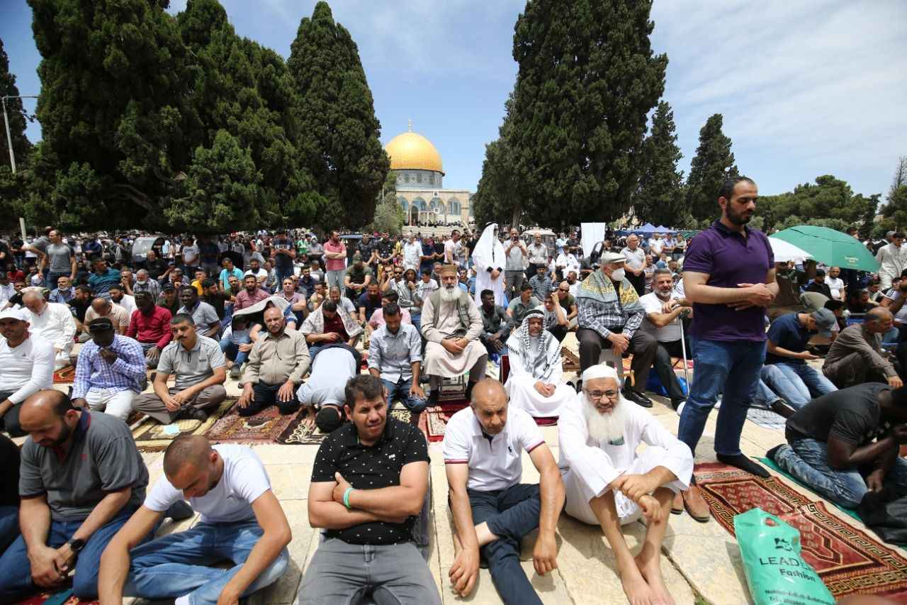 Ayrıca, İsrail vatandaşı on binlerce Filistinli, kuzey ve güneydeki kentlerden Mescid-i Aksa’ya geldi.