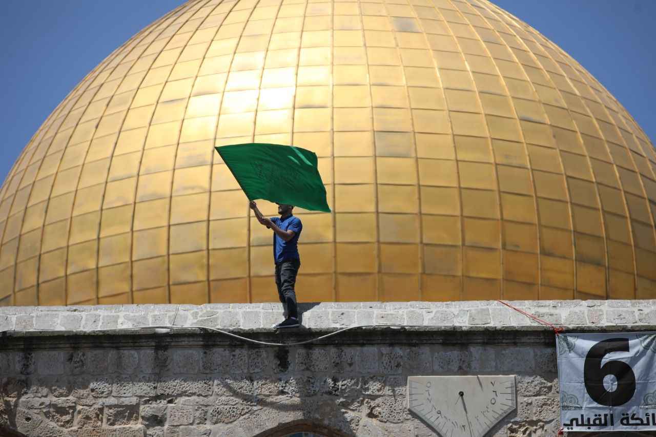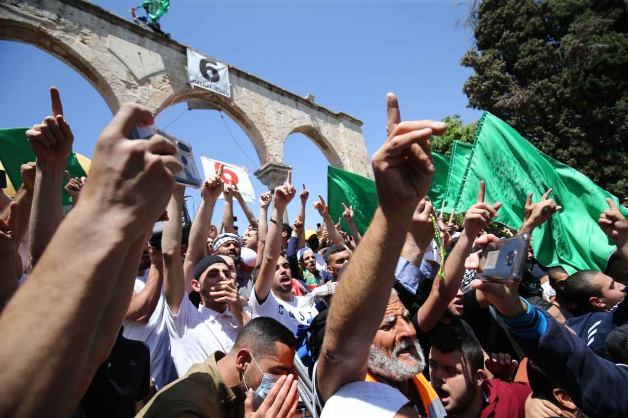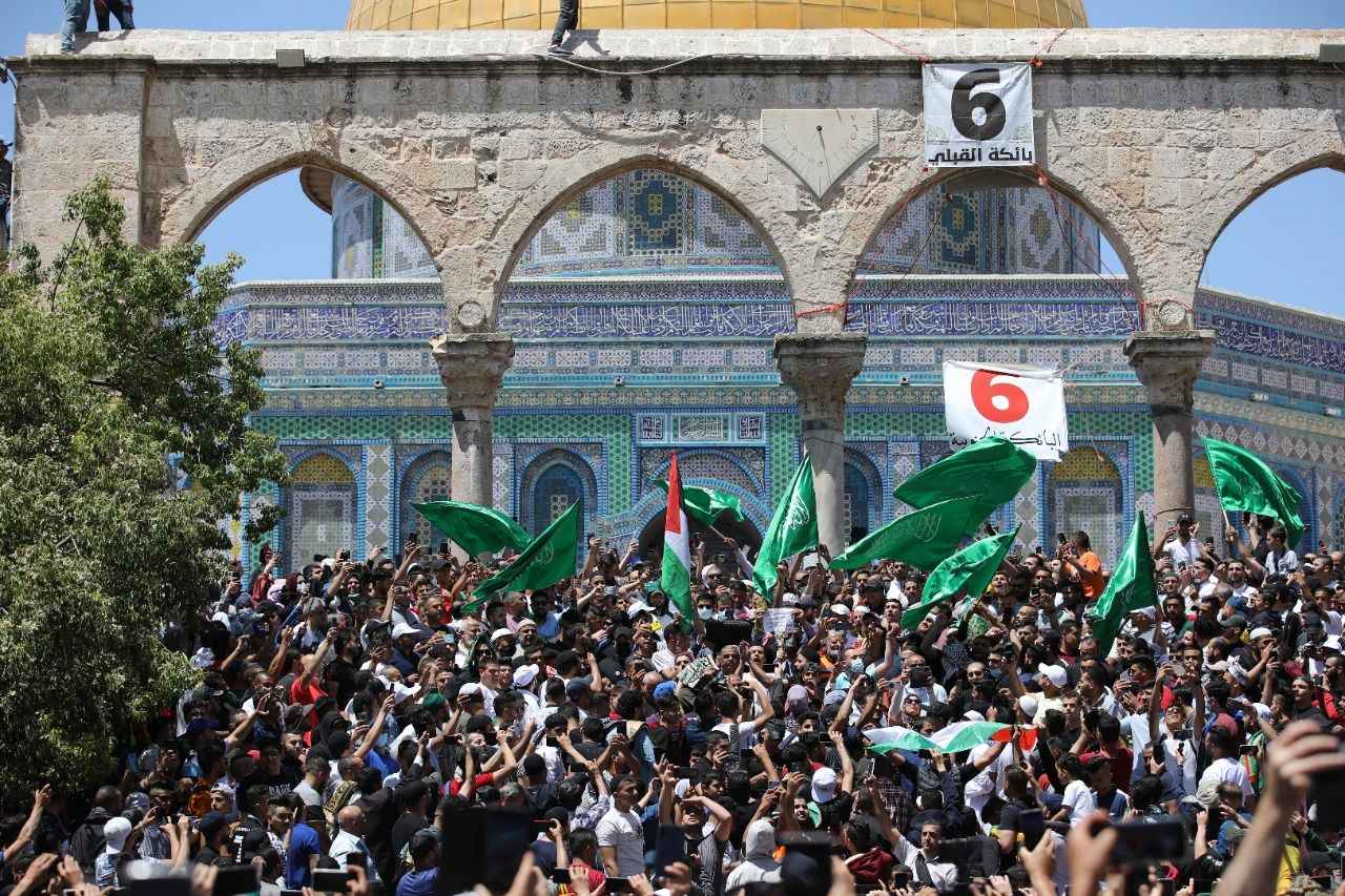 Filistin ile Tevhid bayrakları açan grup, İsrail’in Şeyh Cerrah Mahallesi'ndeki uygulamalarına tepki göstererek Hamas ve Mescid-i Aksa yanlısı sloganlar attı. Bir süre gösteri yapan grup, Kubbetu's Sahra çevresinde tur attıktan sonra dağıldı.