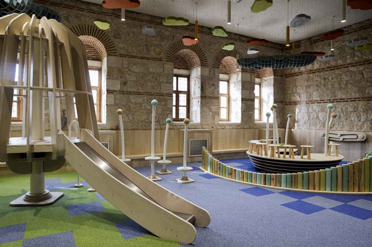 Dört bin 200 kişilik oturma alanı bulunan komplekste, 0-3 ve 3-6 yaş gruplarına hizmet veren Bebek ve Çocuk Kütüphanesi ile ortaokul ve lise öğrencileri için tasarlanmış Gençlik Kütüphanesi yer alıyor.