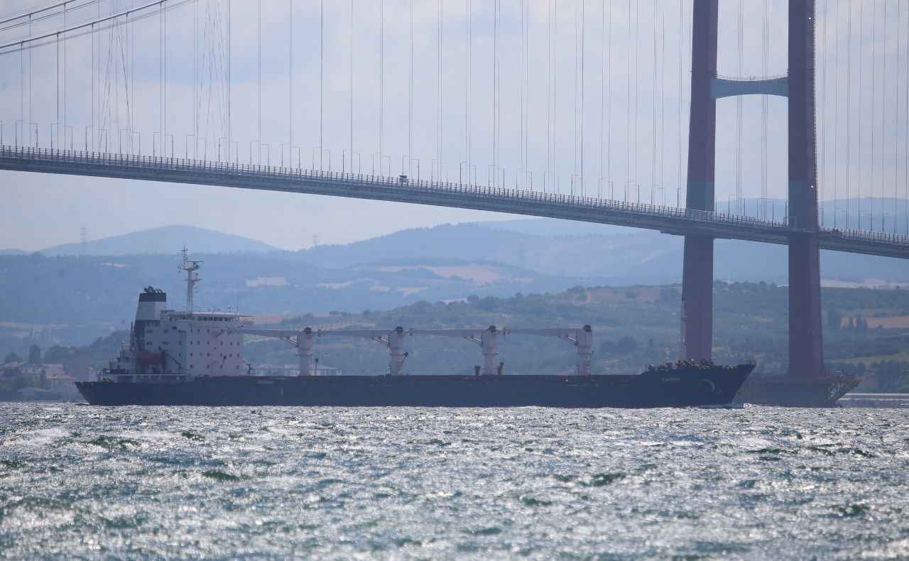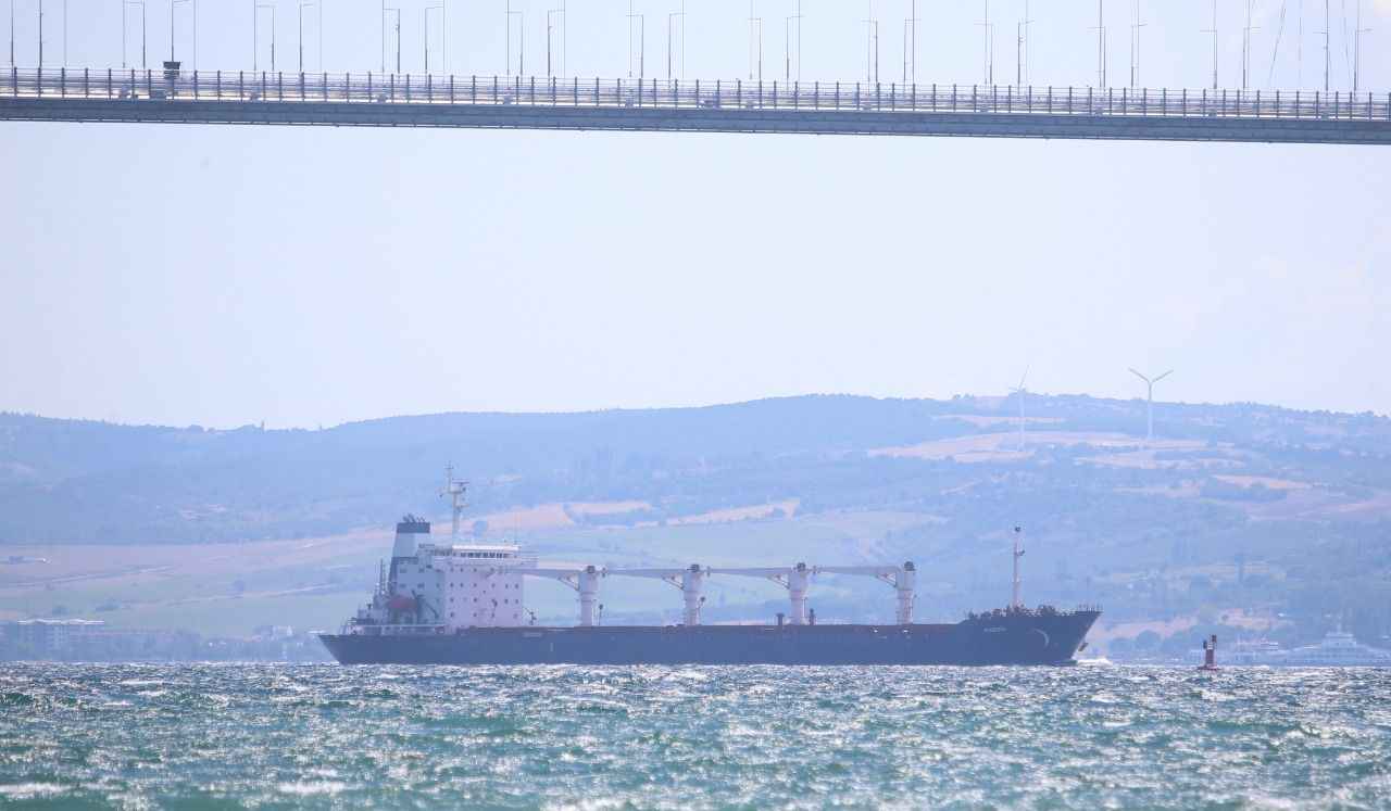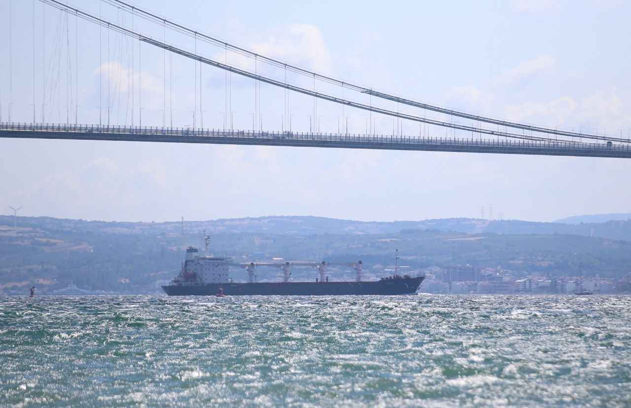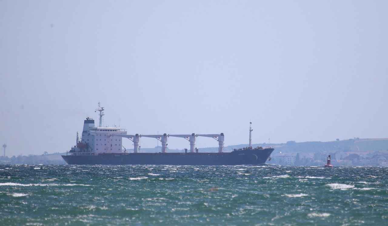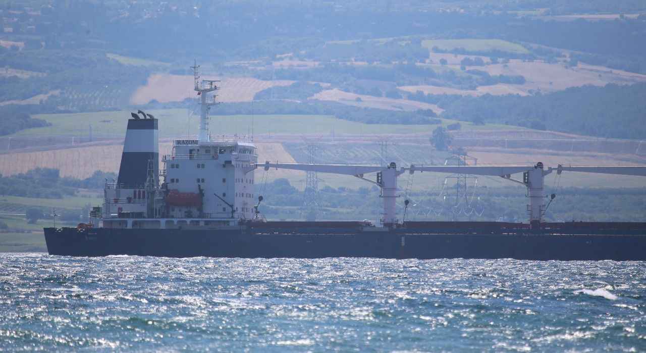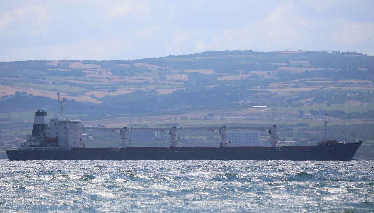 Rusya, Ukrayna, Türkiye ve Birleşmiş Milletler (BM) arasında imzalanan "Tahıl ve Yiyecek Maddelerinin Ukrayna Limanlarından Emniyetli Sevki Girişimi Belgesi" kapsamında yola çıkan ve dün Rumelihisarı açıklarında denetlenen Sierra Leone bayraklı, 27 bin ton mısır taşıyan gemi, saat 15.45'te İstanbul Boğazı geçişini tamamlamasının ardından Marmara Denizi'nden güzergahına devam etti.