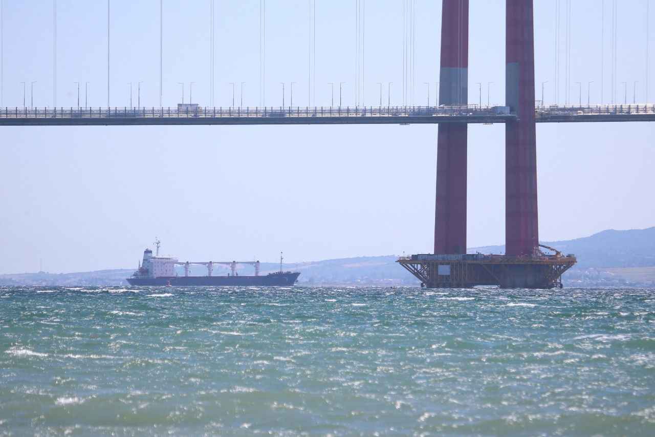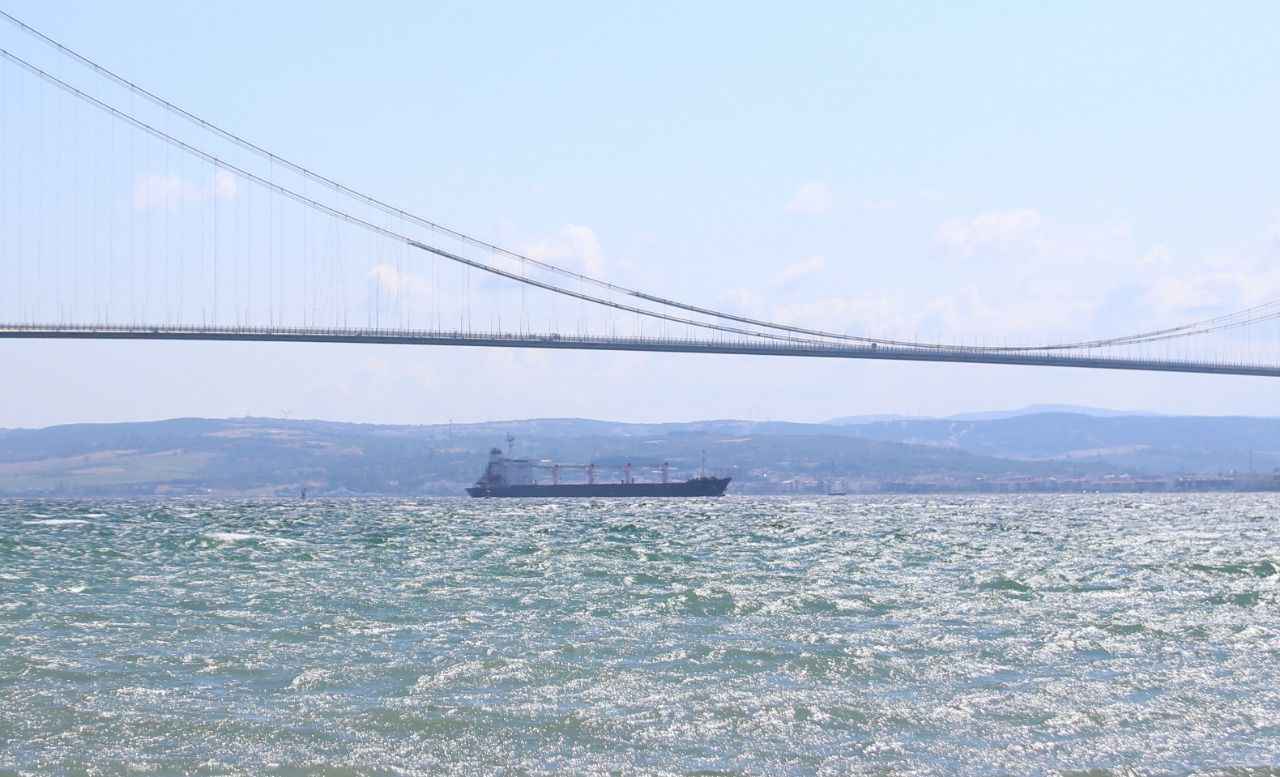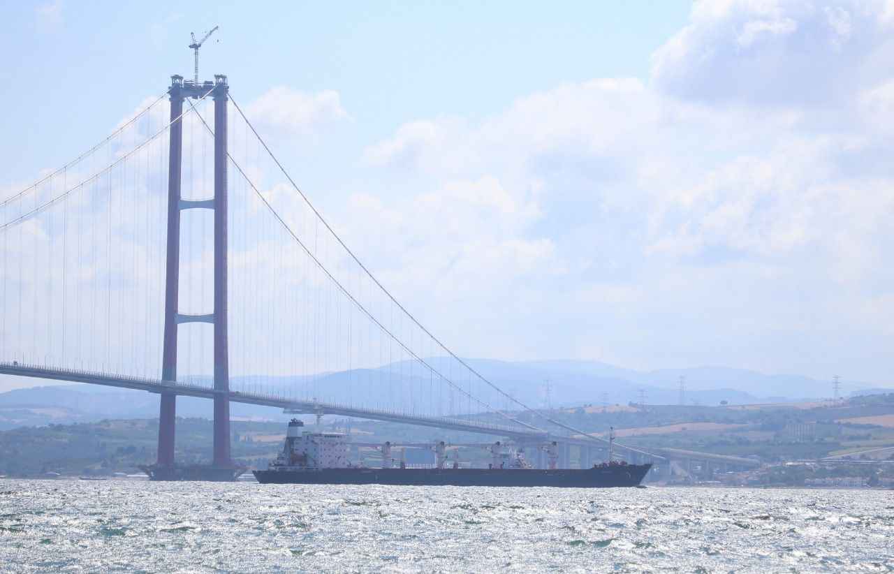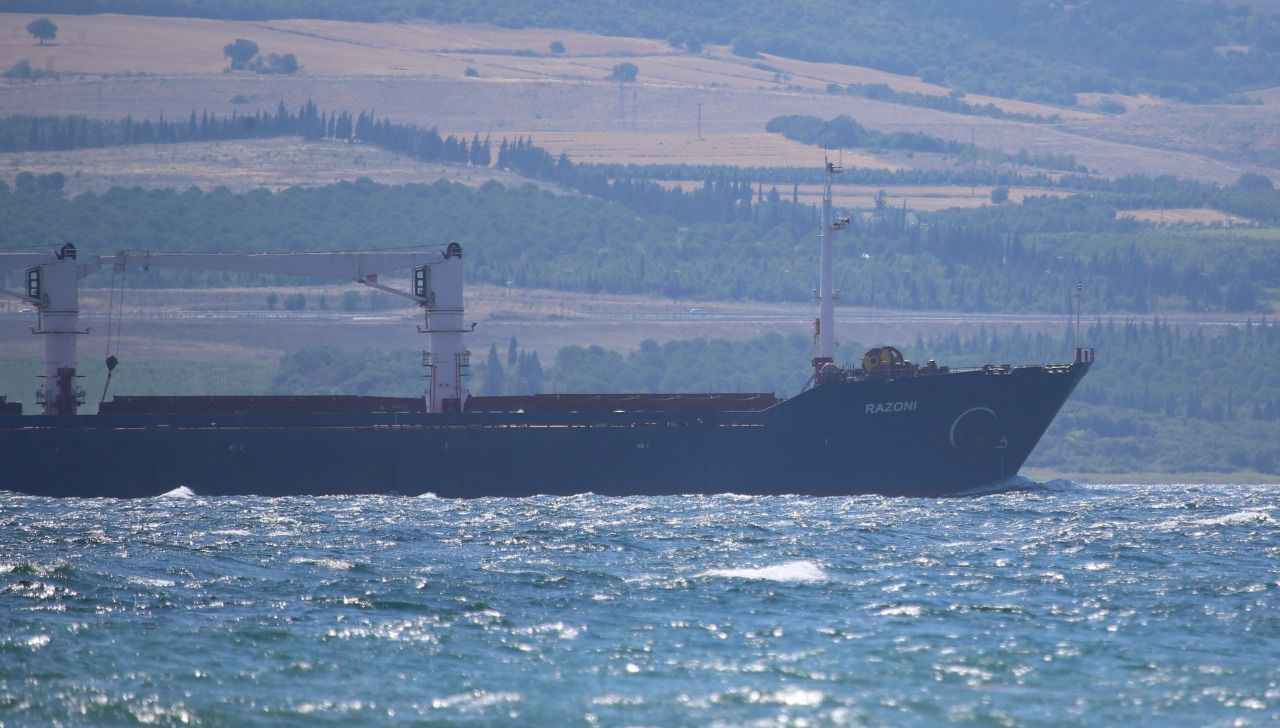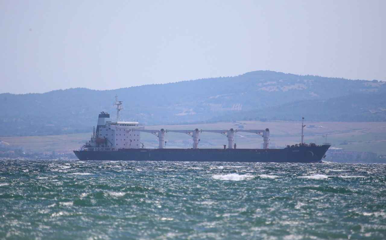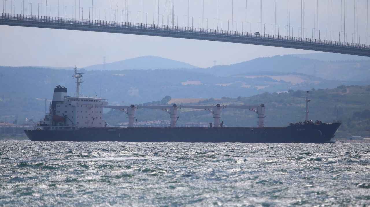 Rusya, Ukrayna, Türkiye ve Birleşmiş Milletler (BM) arasında imzalanan "Tahıl ve Yiyecek Maddelerinin Ukrayna Limanlarından Emniyetli Sevki Girişimi Belgesi" kapsamında yola çıkan ve dün Rumelihisarı açıklarında denetlenen Sierra Leone bayraklı, 27 bin ton mısır taşıyan gemi, saat 15.45'te İstanbul Boğazı geçişini tamamlamasının ardından Marmara Denizi'nden güzergahına devam etti.