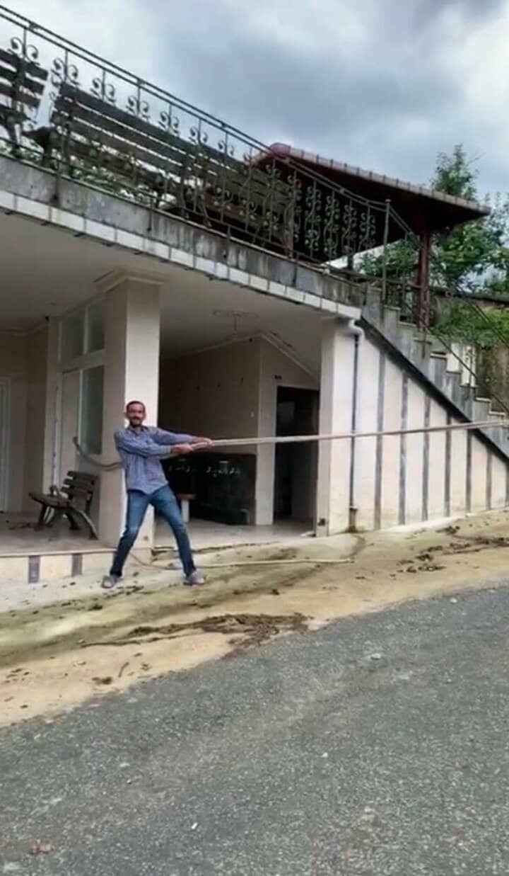 Beldeye bağlı Demirciler mahallesinde bakkallık yapan Oktay Özdemir, geçtiğimiz hafta Doğu Karadenizi etkisi altına alan sağanak yağışlarda dükkanı sele kurban gitmesin diye arkadaşlarının da yardımıyla iple hemen dükkanının karşısındaki caminin kolonuna bağladı.