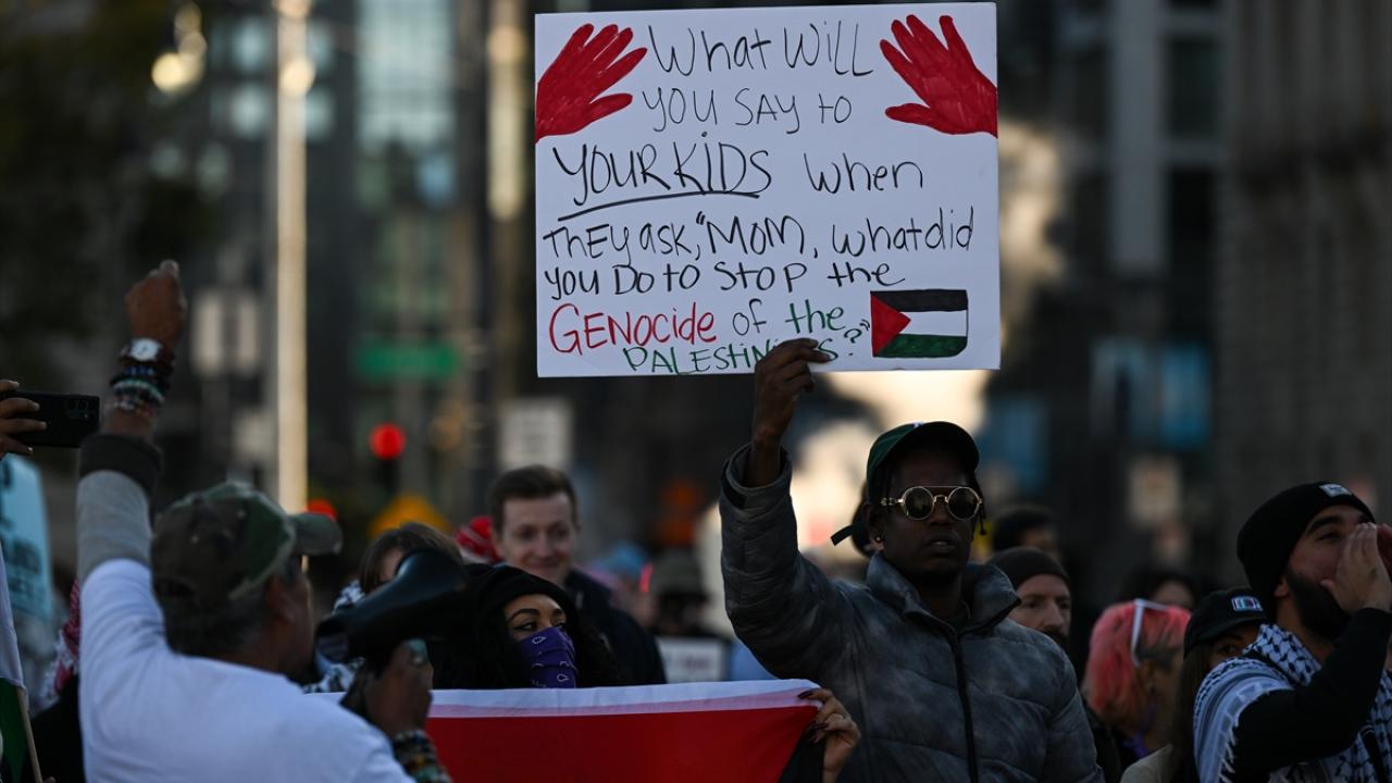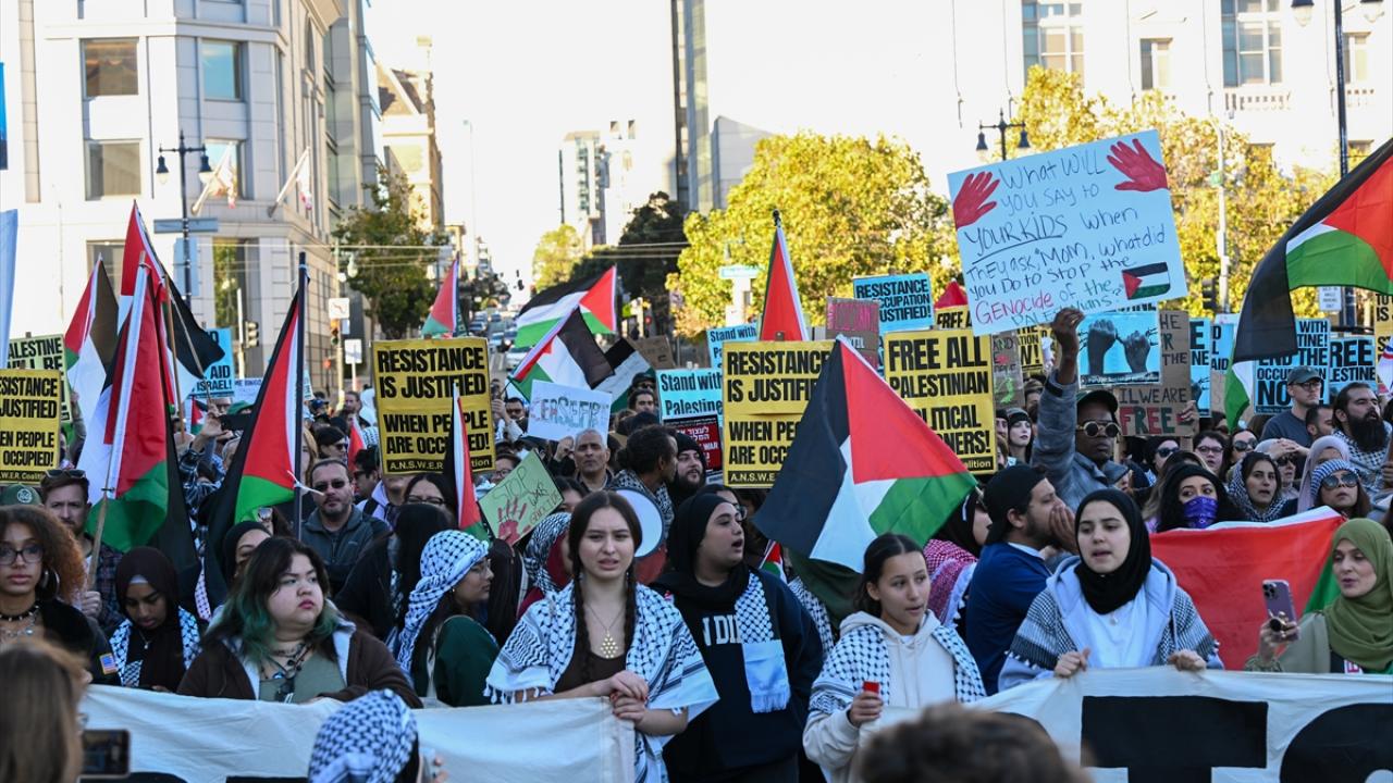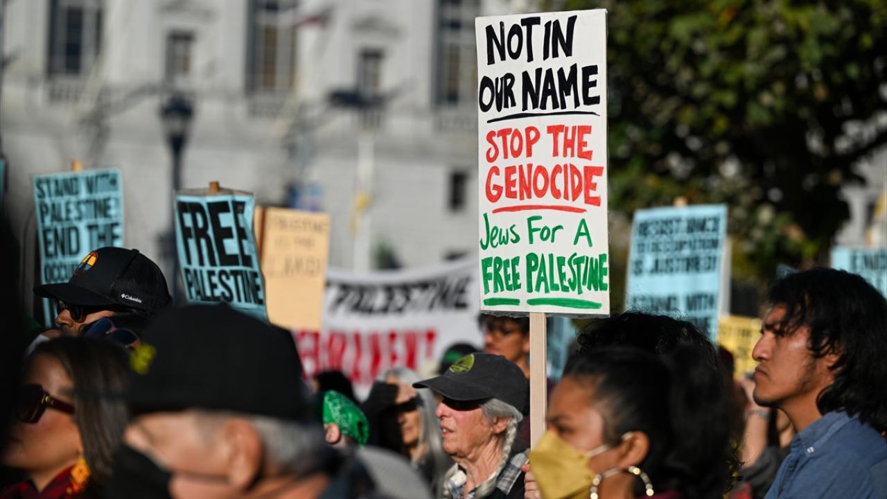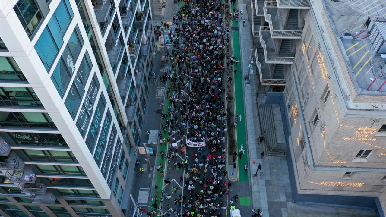 ABD'nin San Francisco kentinde belediye binası önünde toplanan göstericiler, İsrail'in Gazze'ye saldırılarını protesto etti.