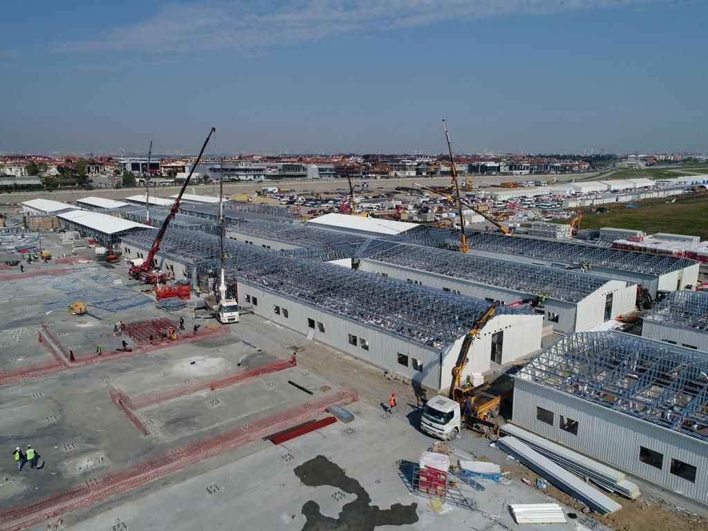 Sayısız işçi ve iş makinesinin çalıştığı alanda hastanenin bazı bölümlerinin duvarları yerleştirilirken bir kısmının çatıları ise tamamlandı.