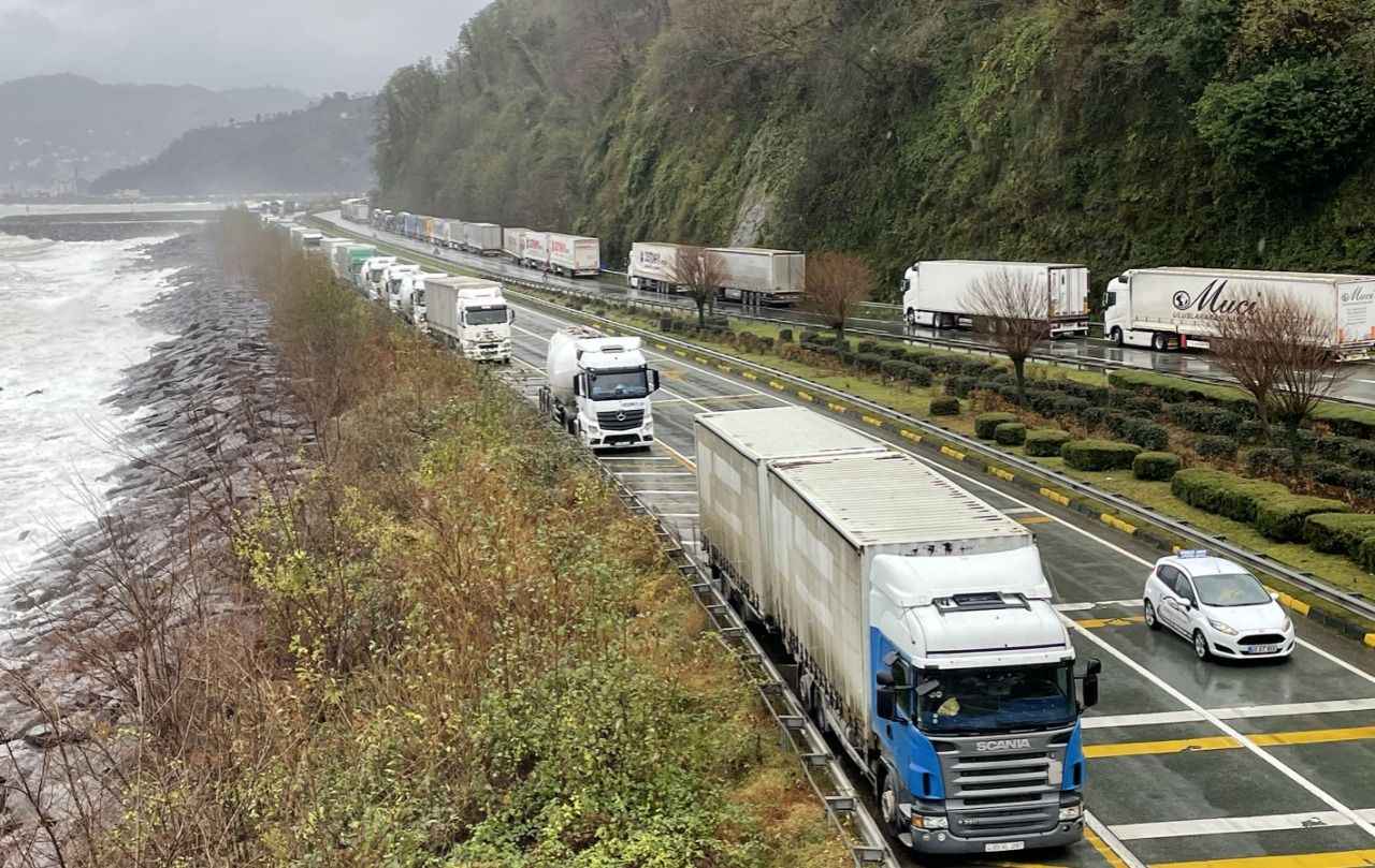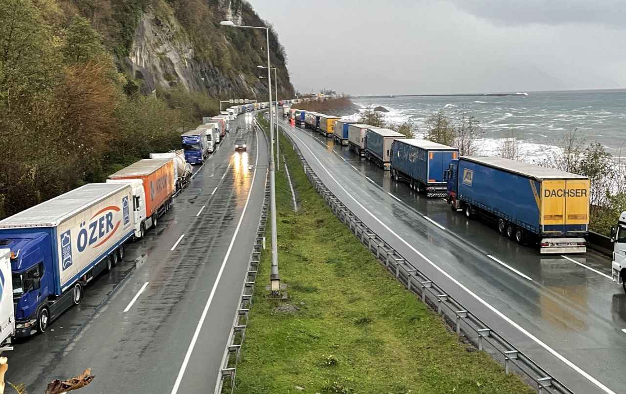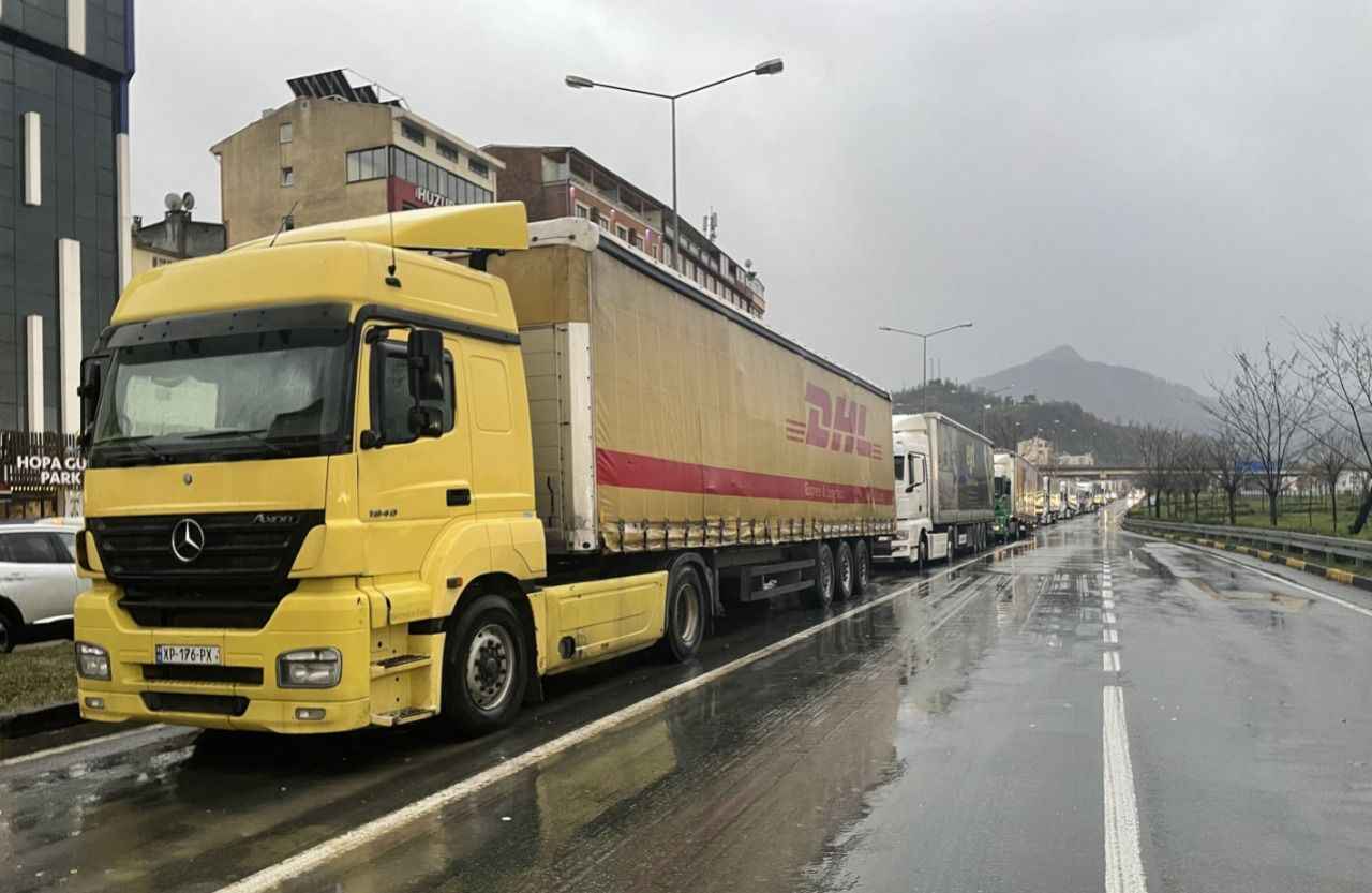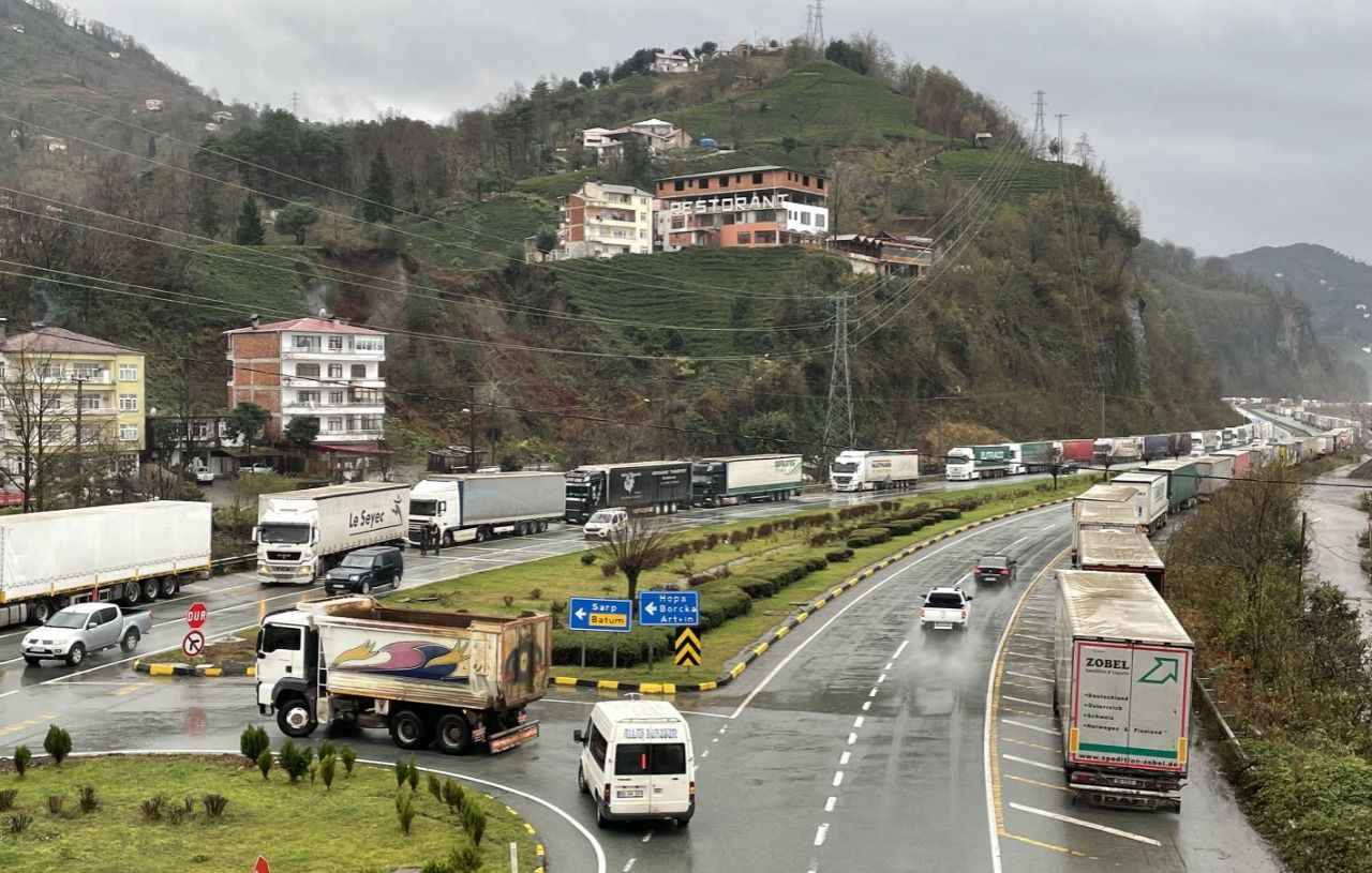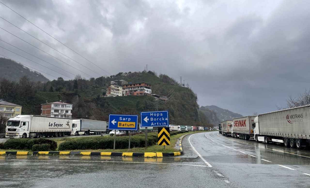 Sarp Sınır Kapısı'ndan başlayarak Karadeniz Sahil Yolu'nun Kemalpaşa, Hopa ve Arhavi ilçe güzergahındaki belli bölümlerde 12 kilometrelik tır kuyruğu oluştu.