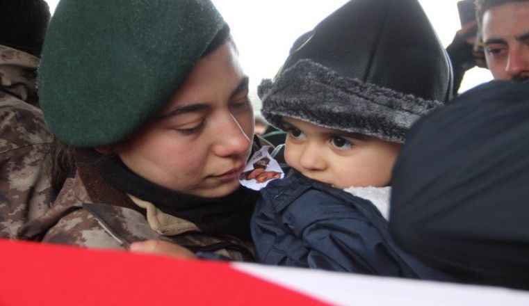 Şehit Birol İli'nin 3 yaşındaki oğlu Metehan tabut başında babasının fotoğrafını öperek annesine babamın tabutu açılmıyor demesi ise çevredekileri gözyaşına boğdu.
