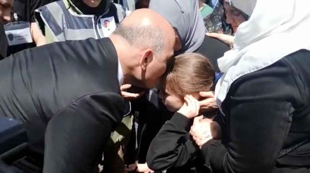 Soylu, şehidin annesi Güllefere, babası Mahir, eşi Zeynep Mat'a taziye dileğinde bulunduktan sonra "Babam cennete gitti, şehitler ölmez, herkes şehit olmaz" diyen şehidin kızı Fatma Zehra (8) ile konuştu.