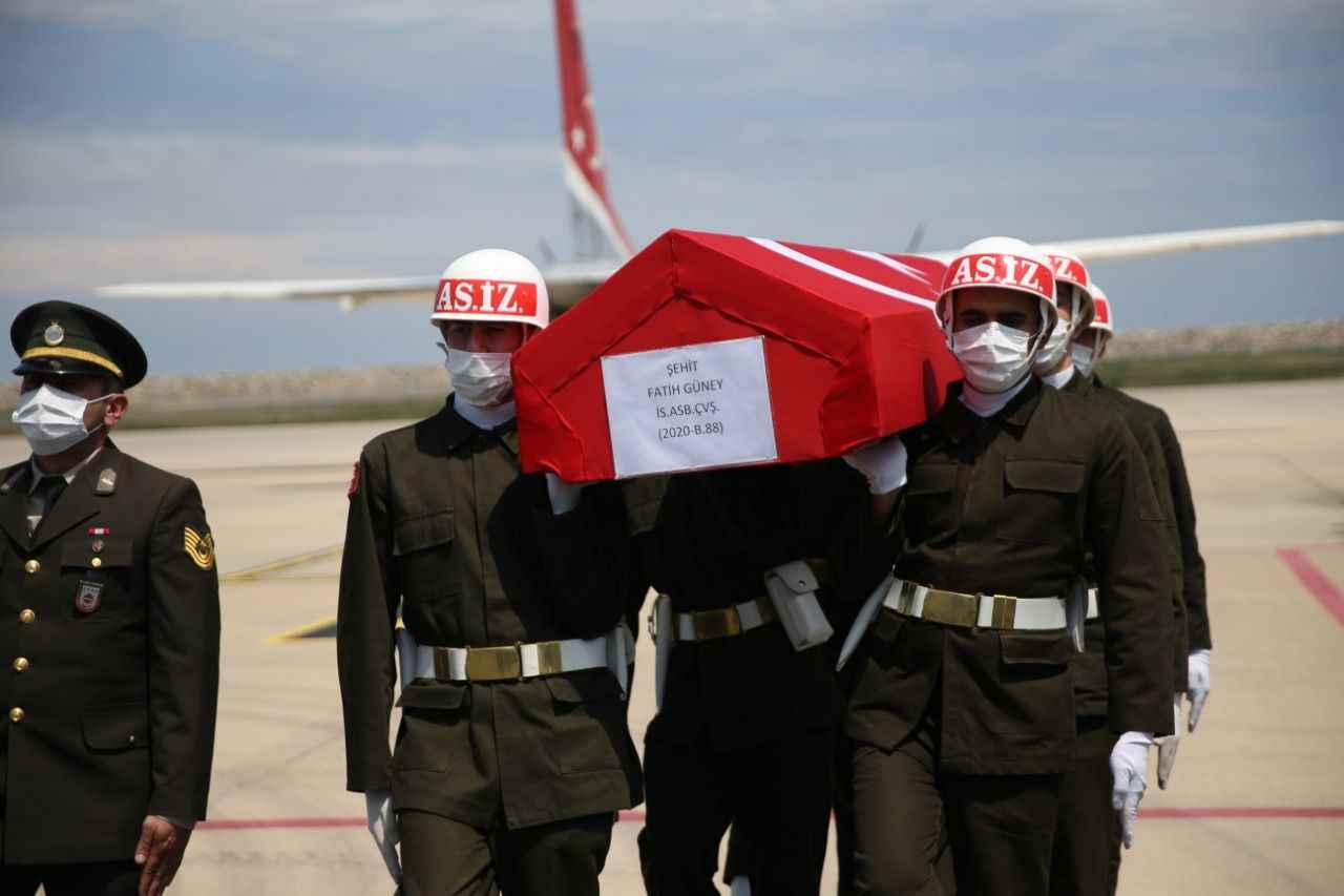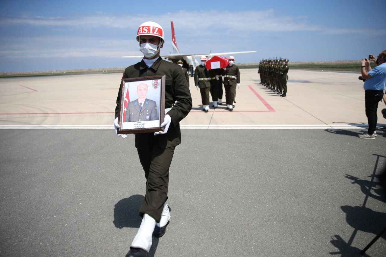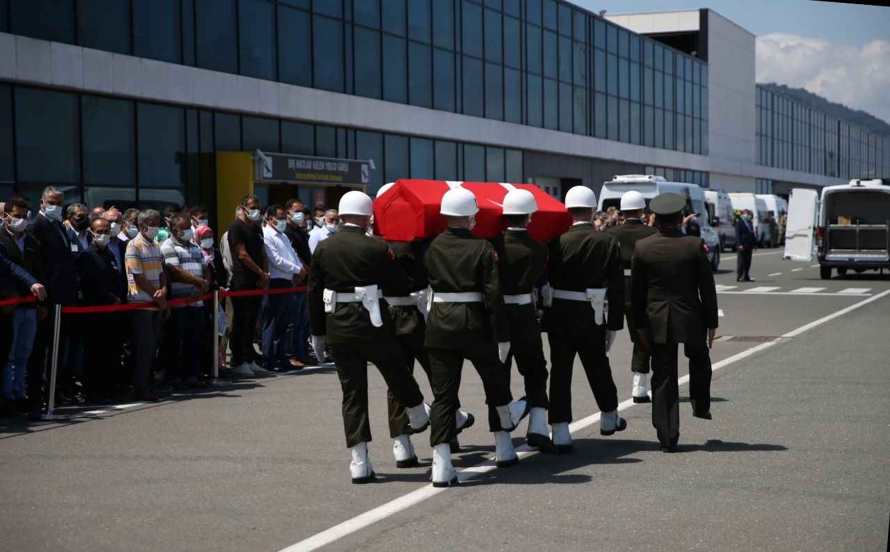 Saygı duruşunda bulunulması, şehitlerin öz geçmişinin okunması ve İl Müftüsü Hüseyin Hazırlar tarafından okunan duanın ardından Güney`in cenazesi Ordu`ya Arslan`ın cenazesi ise Samsun`a gönderilmek üzere askeri uçağa alındı.