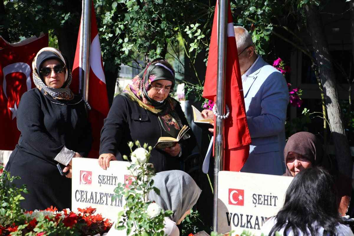Şehitler için Kur-an-ı Kerim okunması ve dua edilmesinin ardından Bakan Soylu ve beraberindekiler, mezarlık içerisinde bulunan Polis Şehitliği alanına geçti.
