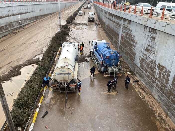 Sağanağın ardından taşan Karakoyun deresi çevresindeki Mance ve Karakoyunlu mahallelerinde temizlik çalışmaları yürütülüyor.