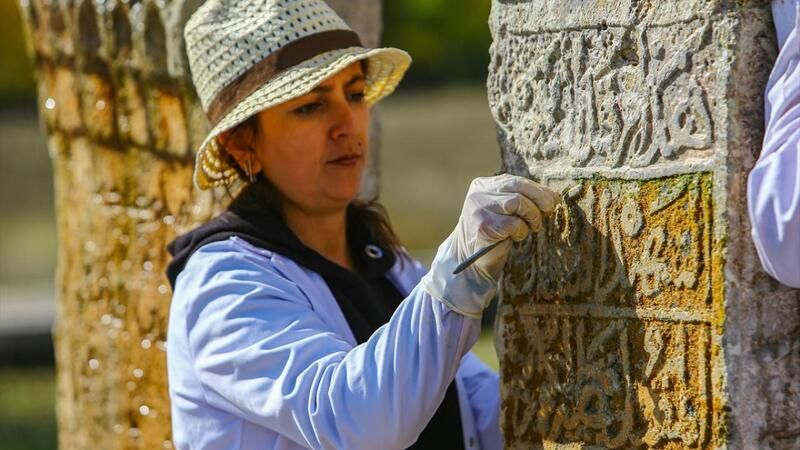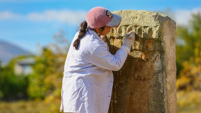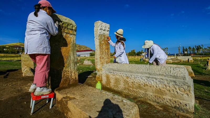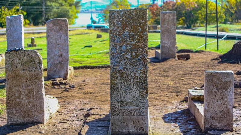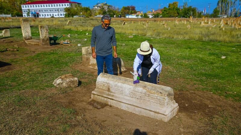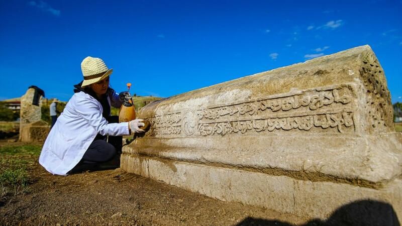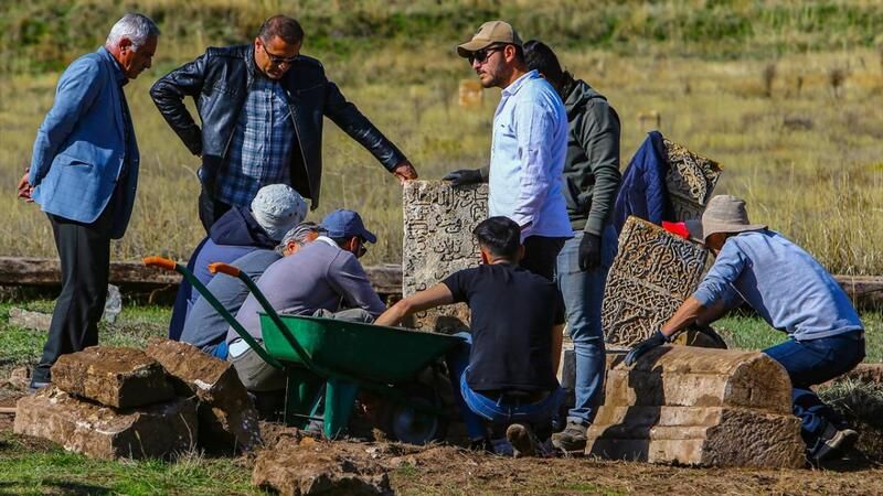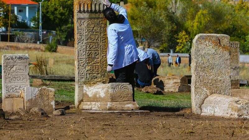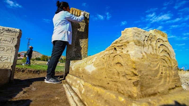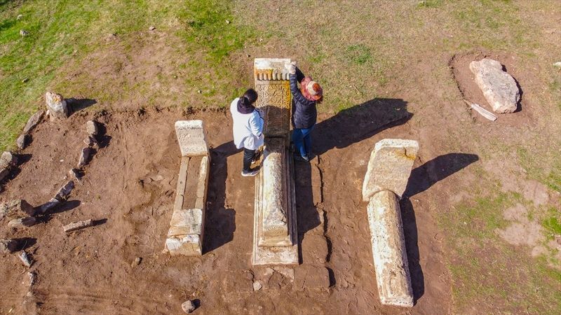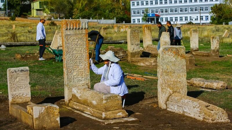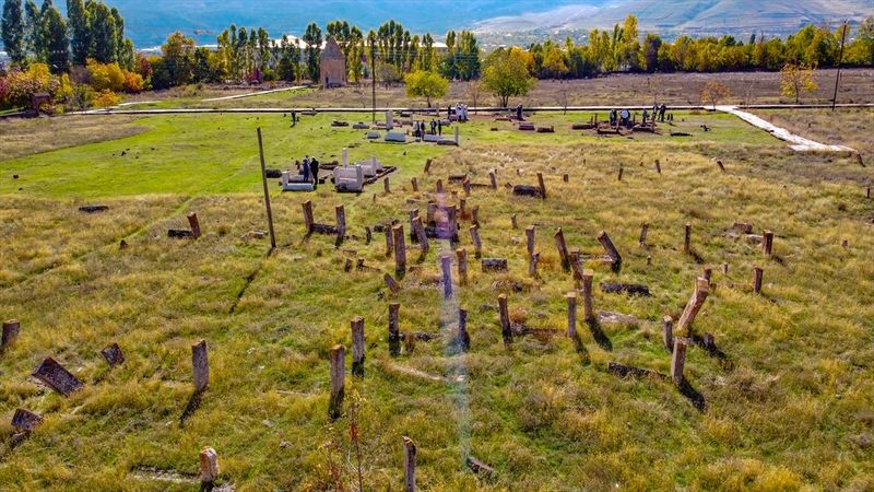 Van'ın Gevaş ilçesindeki Selçuklu Mezarlığı'nda yürütülen kazı ve restorasyon çalışmaları kapsamında 8 sandukalı mezar ortaya çıkarıldı.