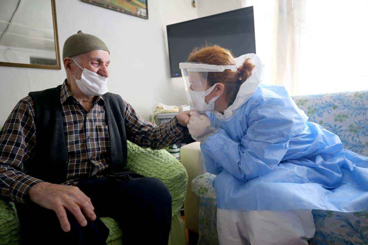 Planlamaya göre yaşlı vatandaşlara CoronaVac aşısı yapan ekip, gerekli görülen vatandaşlara ise PCR tarama testi uyguluyor.