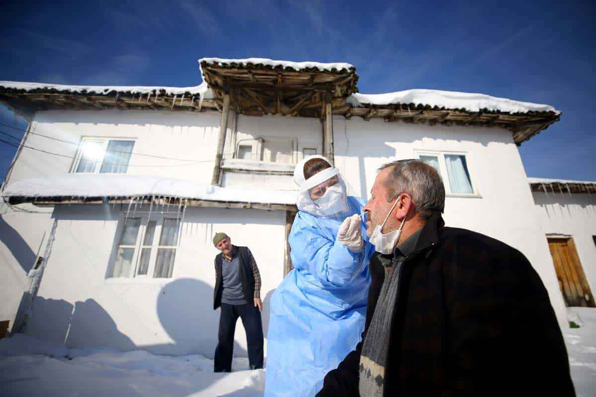 Sağlık ekipleri, Böcükler'in elini öperek teselli etti. Ebe Dilber Aktürk Göktürk, yaptığı açıklamada, mobil ekip olarak her gün kar, kış, yağmur, çamur, soğuk demeden köylere giderek vatandaşlara hizmet vermeye çalıştıklarını söyledi. Yaklaşık 10 aydır virüsle mücadele ettiklerini anlatan Göktürk, "Halimizden ve çalışmalar şartlarımızdan hiçbir zaman şikayet etmedik, tam tersine bu mücadelede etkin rol almaktan mutluyuz. Aşılama çalışmalarımız tüm hızıyla devam edecek. Yeni dozlarımız geliyor. Uzun bir süre sahada aşılama çalışmalarına devam edeceğiz." dedi.