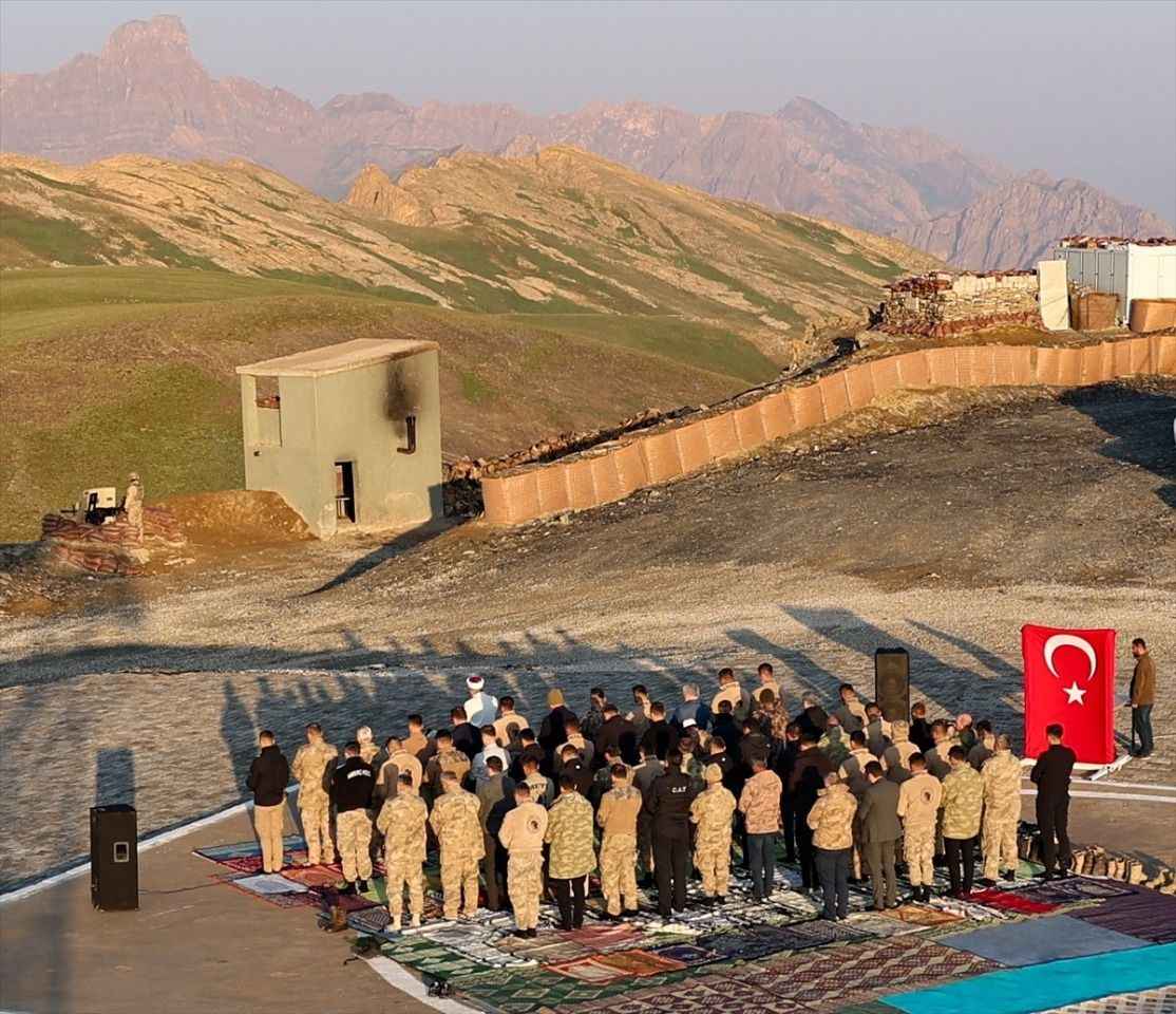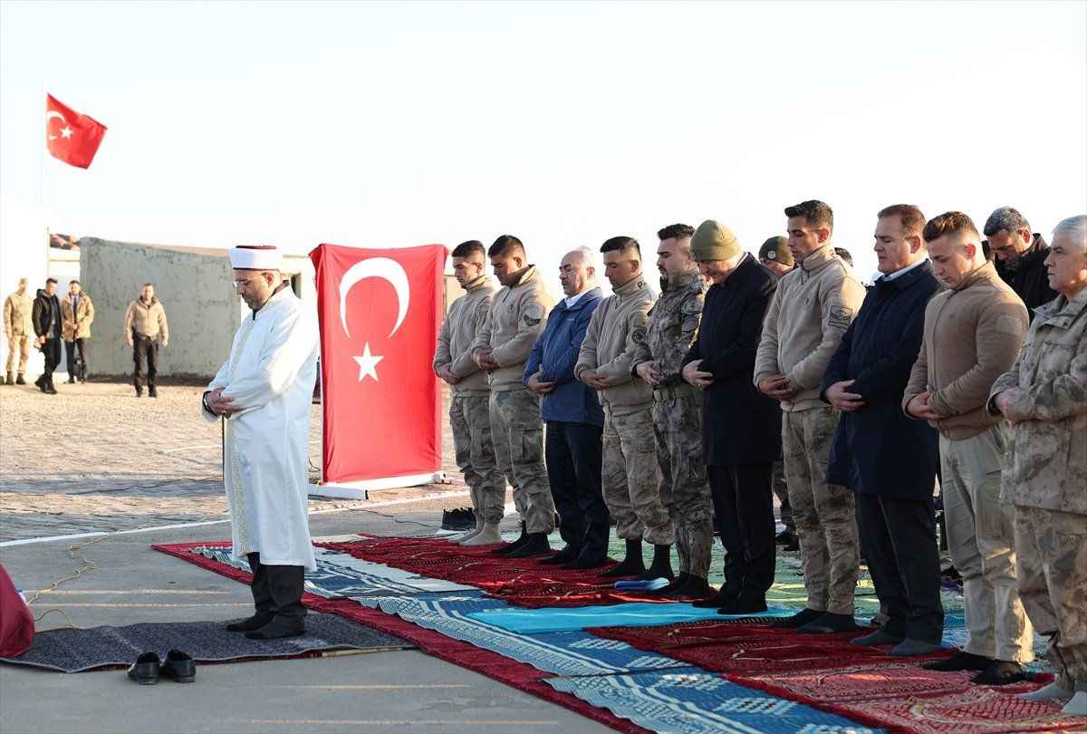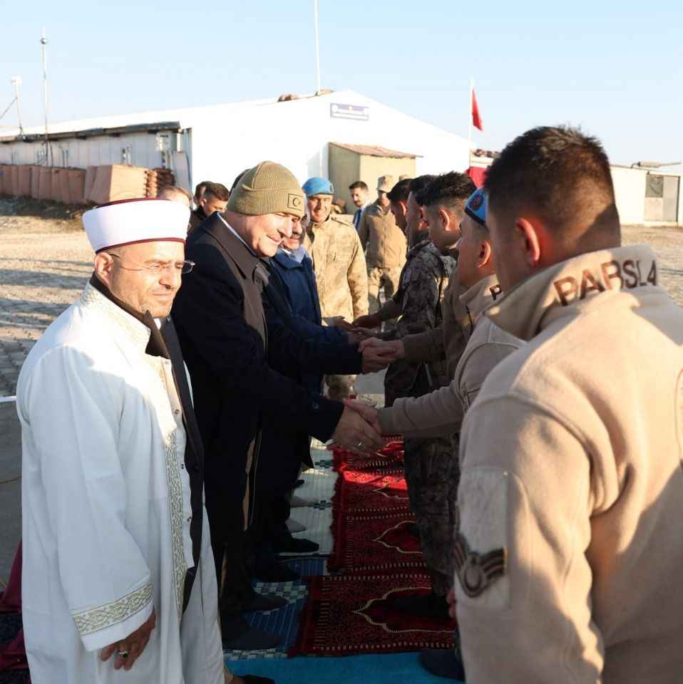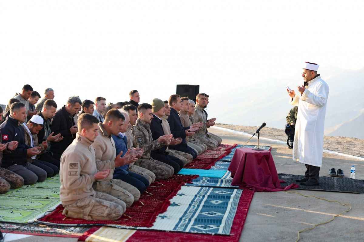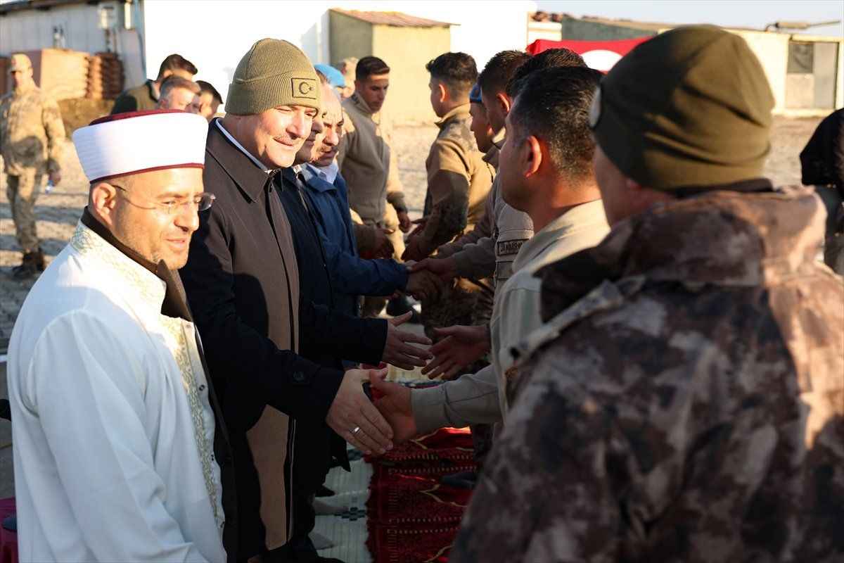 Nöbet tutan jandarmalarla sohbet eden Soylu, Kurban Bayramı namazını buradaki askerlerle kıldı.