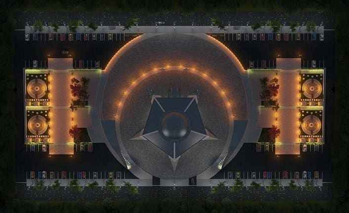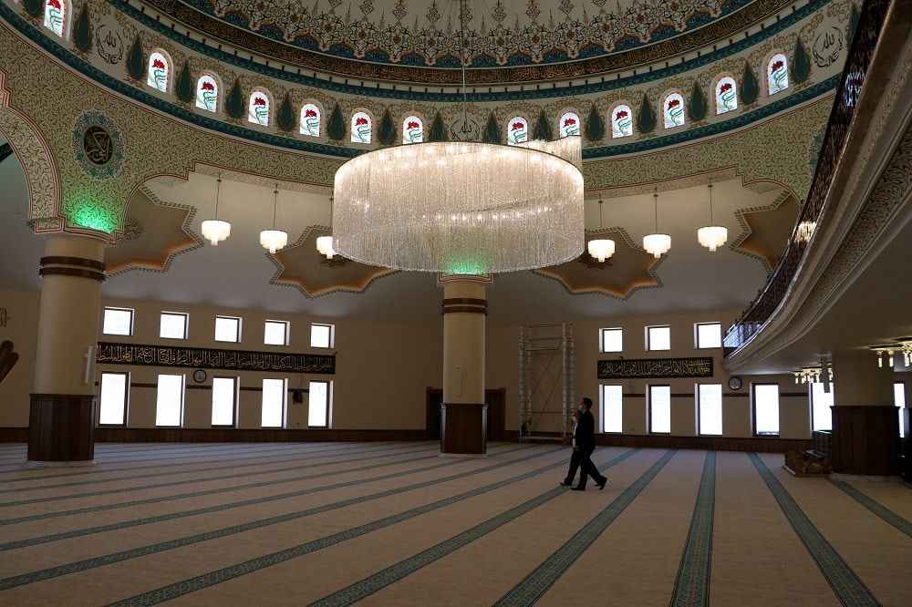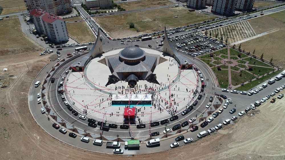 Yukarı Tekke Mezarlığı yakınlarında, belediye ve hayırsever vatandaşların iş birliğiyle yaptırılan 7 bin metrekare kapalı alana kurulu "ay yıldız" şeklindeki camide cuma namazı kılındı.