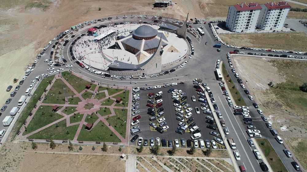 Yıldız şeklindeki kapalı alanında 3 bin 500, hilal şeklindeki avlusunda ise 5 bin kişinin namaz kılabileceği caminin açılışını Sivas Valisi Salih Ayhan, Belediye Başkanı Hilmi Bilgin ve il protokolü gerçekleştirdi.