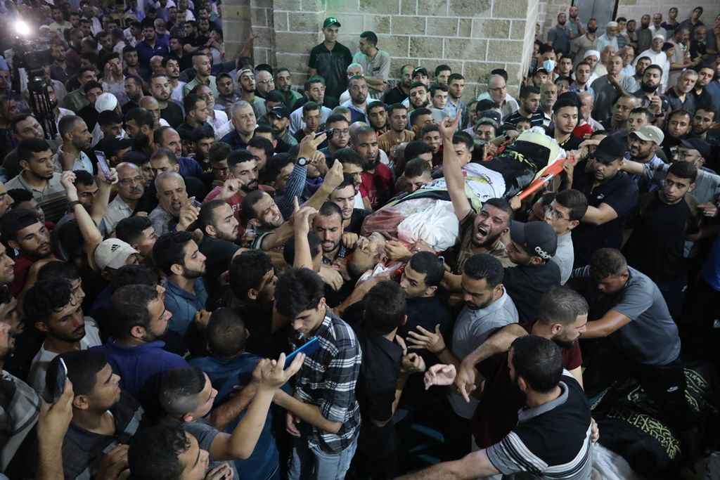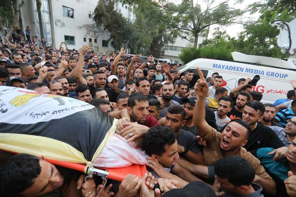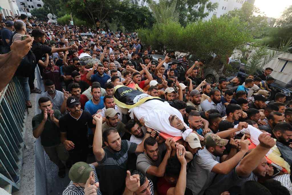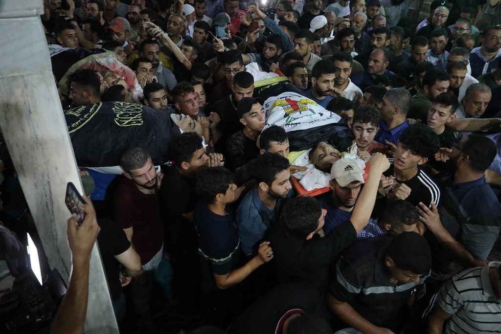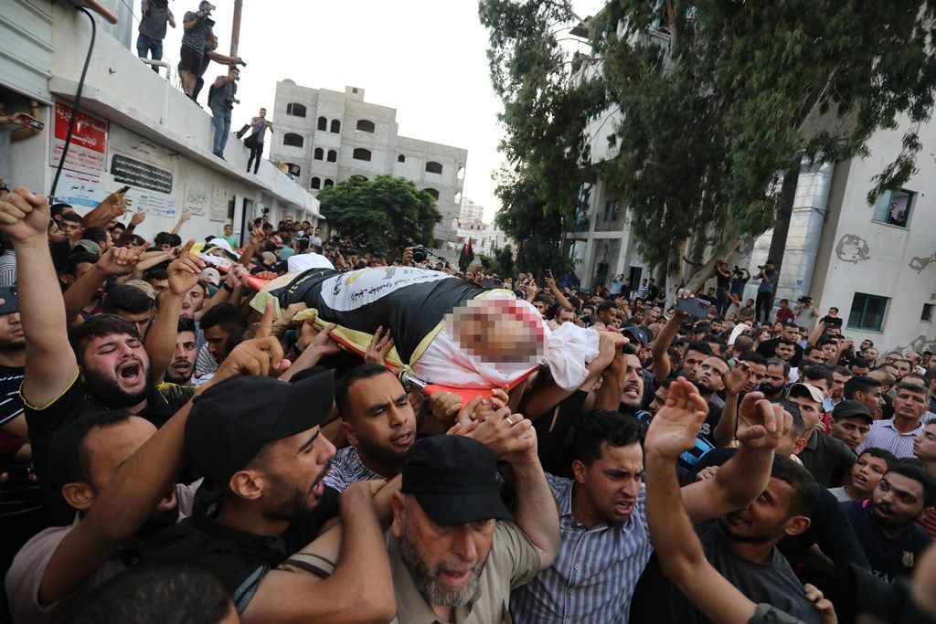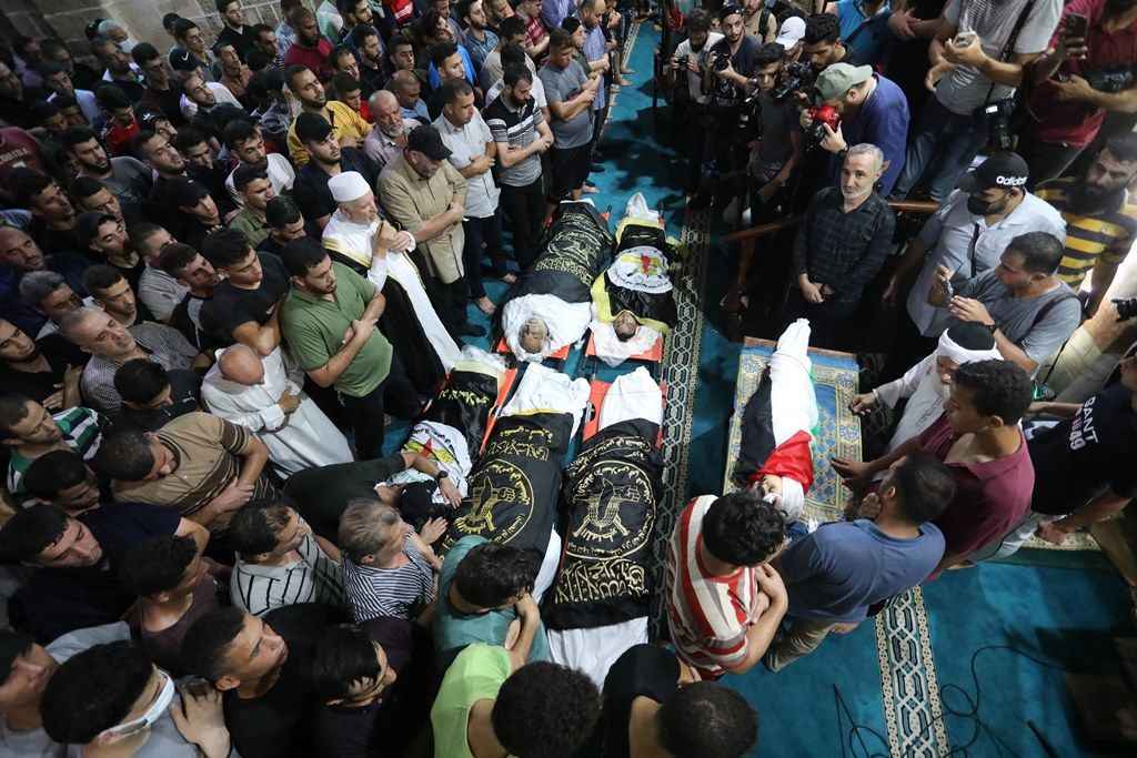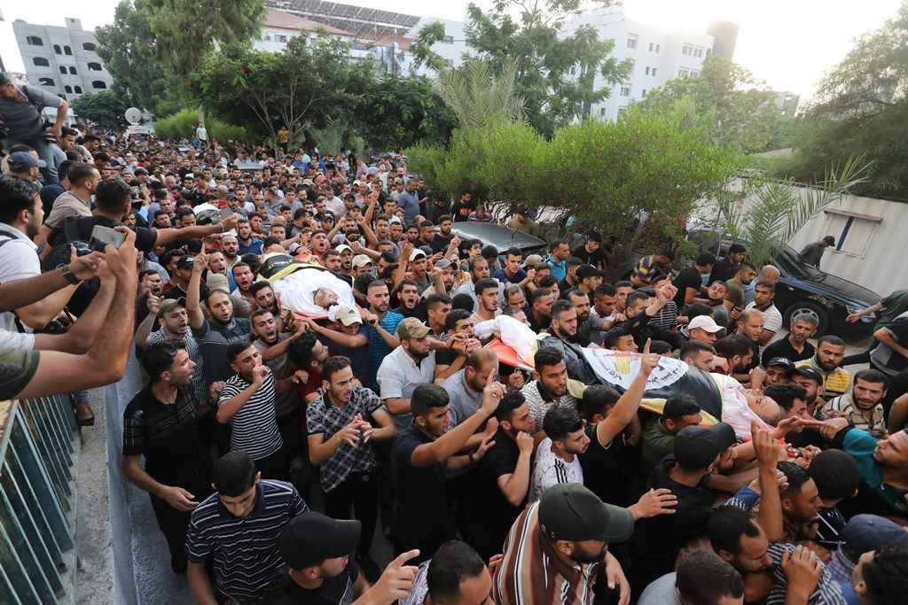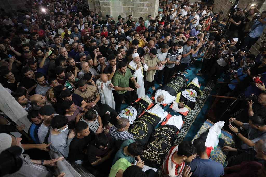 İşgalci İsrail güçlerinin Gazze Şeridi’ne yönelik saldırılarında vefat eden 1’i çocuk 10 kişi için cenaze töreni düzenlendi.