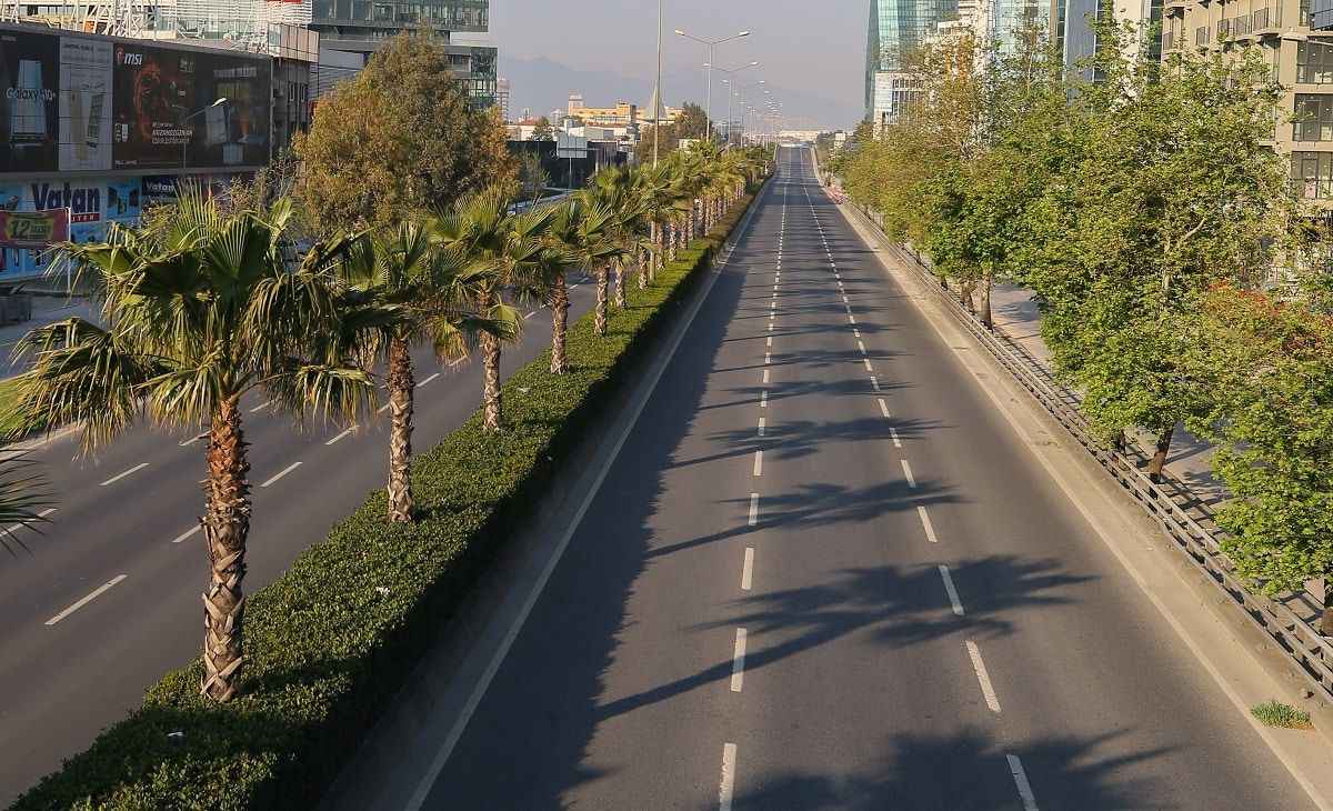 İzmir kent genelinde, cadde ve meydanların boş olduğu görüldü.