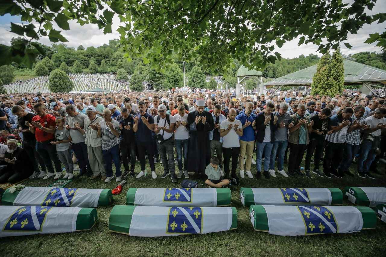Bosna Hersek İslam Birliği (Diyanet İşleri) Başkanı Husein Kavazovic tarafından kıldırılan cenaze namazına, Bosna Hersek devlet yetkililerinin yanı sıra AK Parti Genel Başkanvekili Numan Kurtulmuş ve ülkedeki diplomatik misyon şefleri ile kurbanların yakınları katıldı.