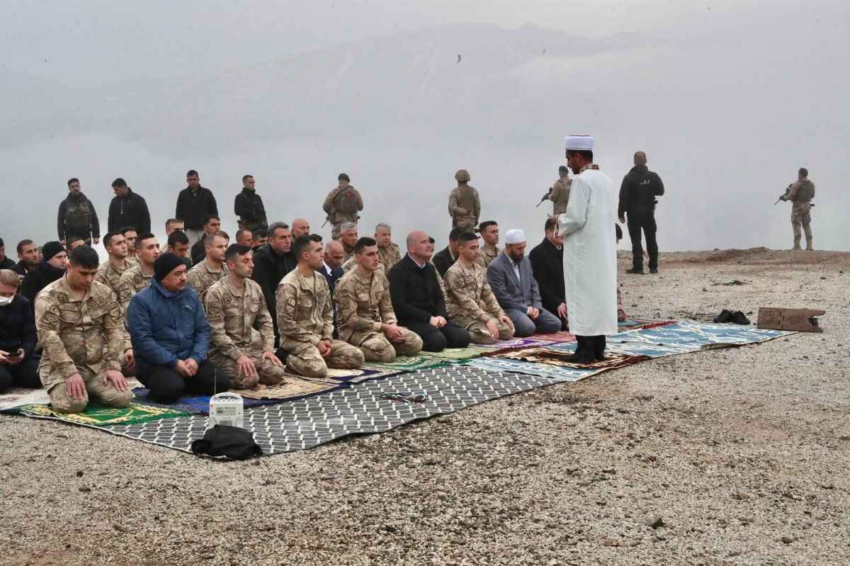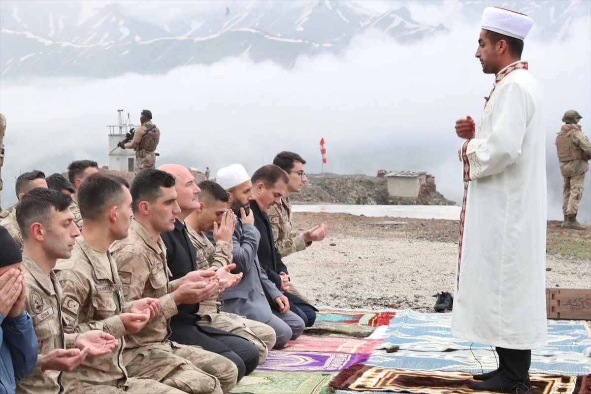 Bayram namazını İran sınırındaki 2 bin 100 rakımlı Zirvin Tepe Üs Bölgesi'nde görevli askerlerle kılan Bakan Soylu, namaz sonrasında İçişleri Bakan Yardımcısı Mehmet Ersoy, Jandarma Genel Komutanı Orgeneral Arif Çetin ve Hakkari Valisi İdris Akbıyık'la birlikte jandarmalarla bayramlaştı.