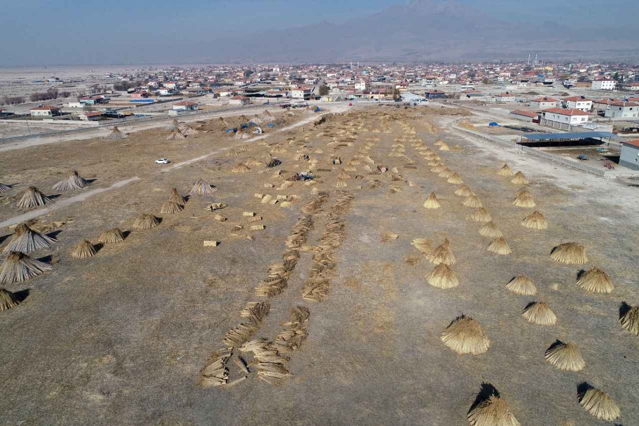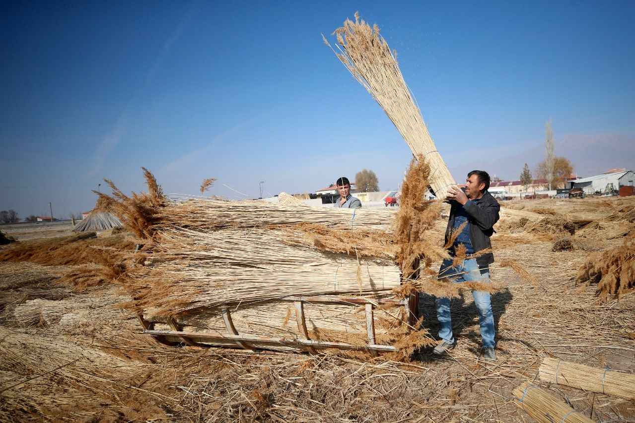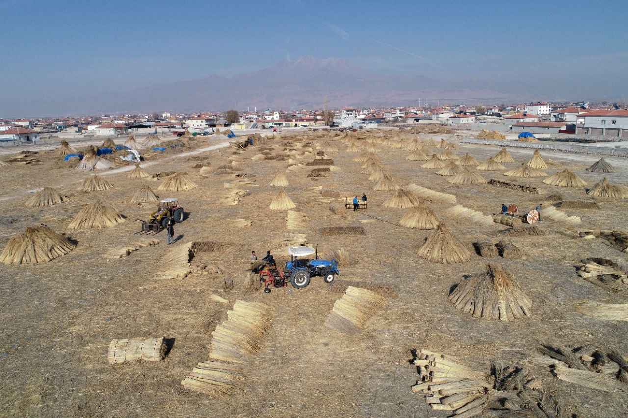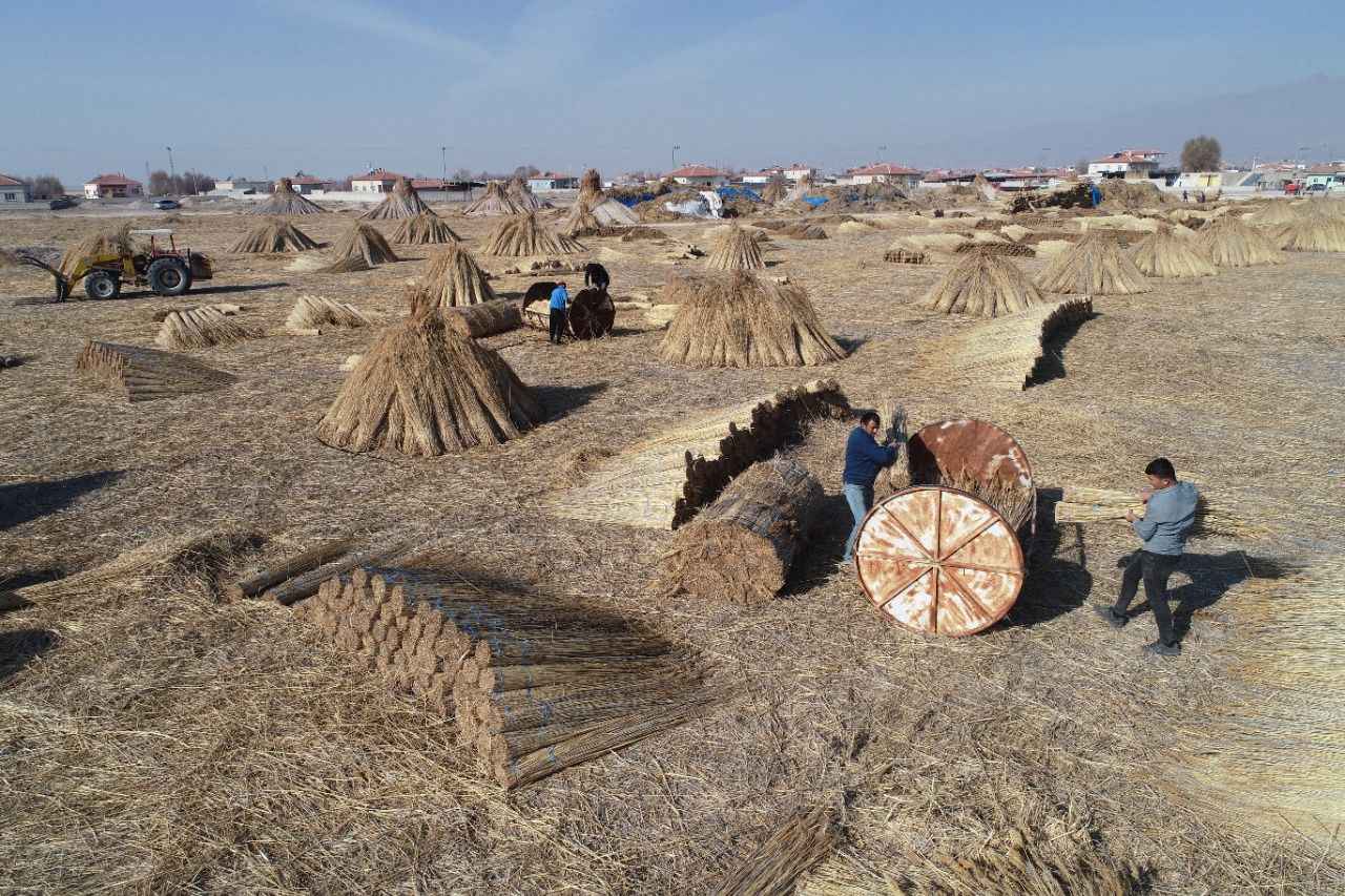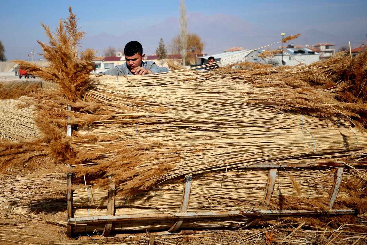 Develi ilçesi Sindelhöyük Mahallesi ile Sultan Sazlığı Milli Parkı çevresinde yaşayan vatandaşlar zorluklara aldırış etmeden hasat ettikleri kamışları, bir süre dinlenmesi için araziye getiriyor. Büyük emeklerle toplanan kamışlar, makinelerle temizlenip kullanım alanına göre ayrıştırıldıktan sonra kurutuluyor.