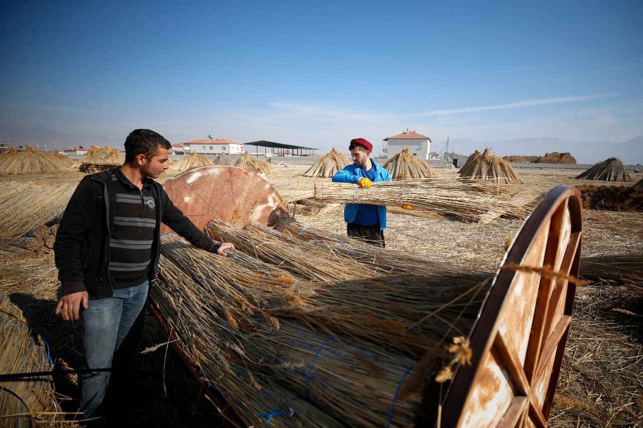 Kamışların işlenmesi için önce soğuğu yemesi lazım. Bu malzeme soğuğu yedikten sonra ağaçlaşma dönemine girer. Kış aylarında hasat ettiğimiz kamışları, bahara kadar işliyoruz. Kamışlar sazlıktan geldikten sonra burada piramit haline getiriliyor. Burada biraz soğuk havada bekliyor. Çünkü hem kesmeden önce hem de piramit haline getirildikten sonra soğuğu yemesi gerekiyor. Bekledikten sonra tekrar temizlenerek işleme giriyor ve standart ölçülere getiriliyor. Bu sırada hatalı olanlar çıkarılıyor. Ayrıca depomuzda hasır örüyoruz.