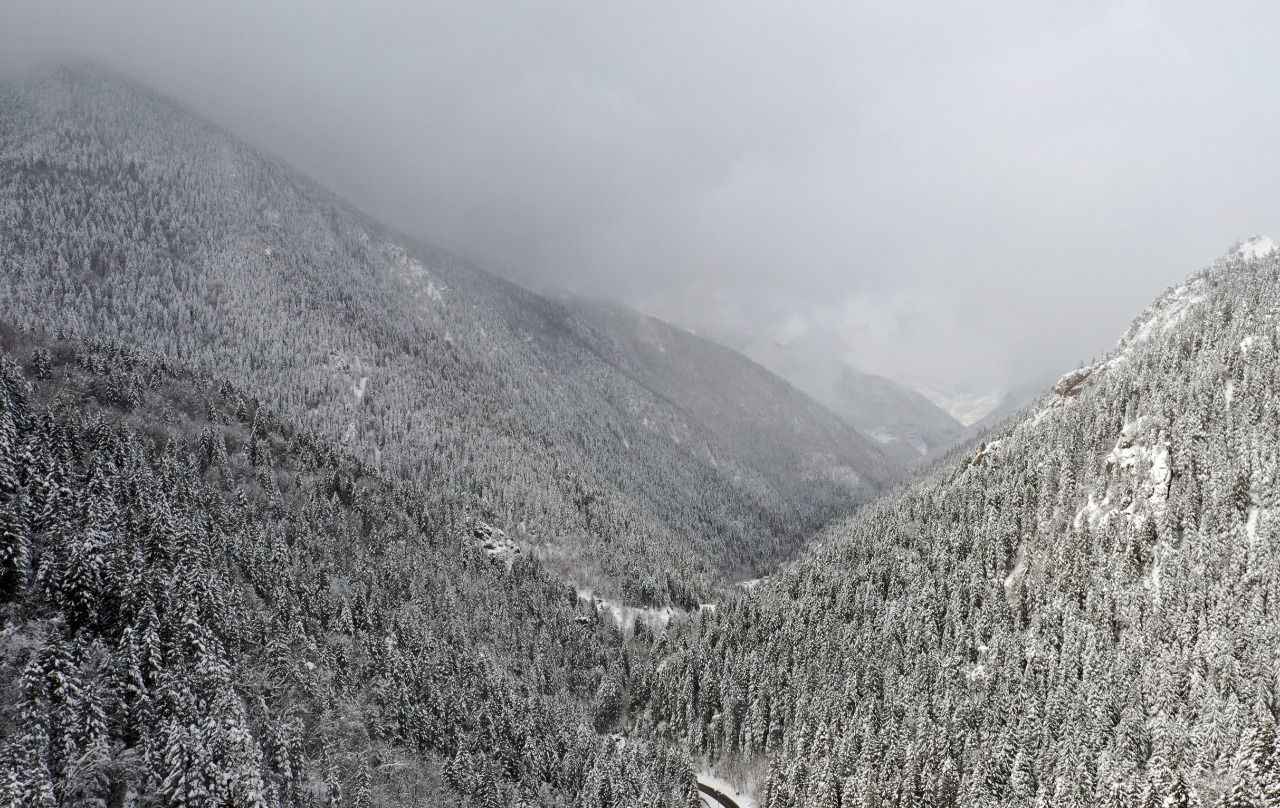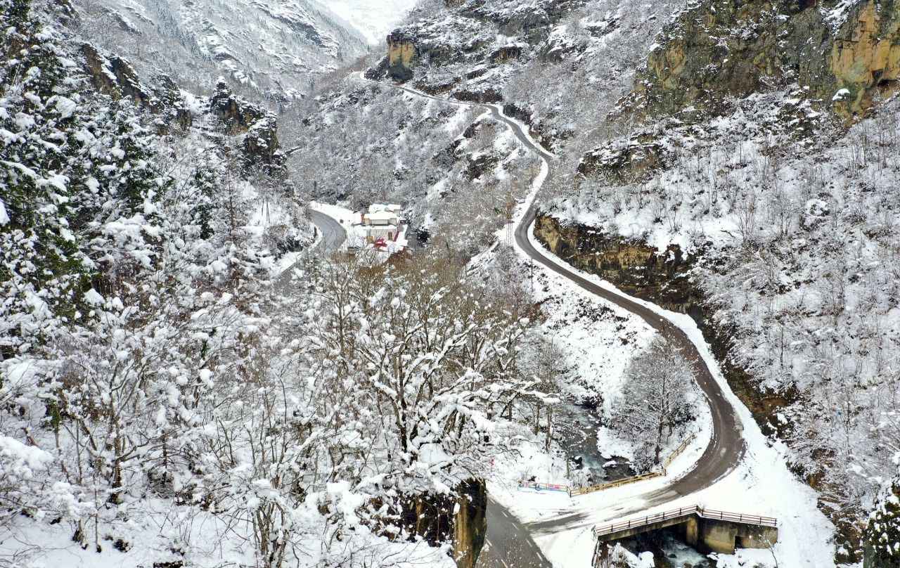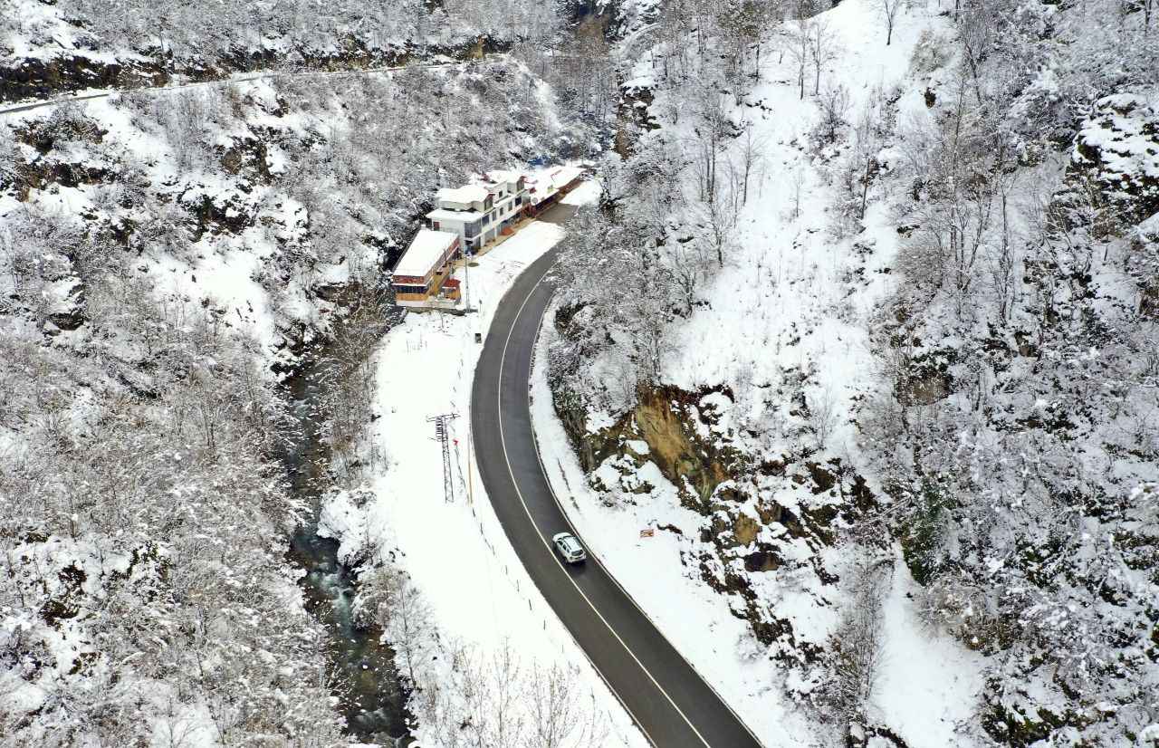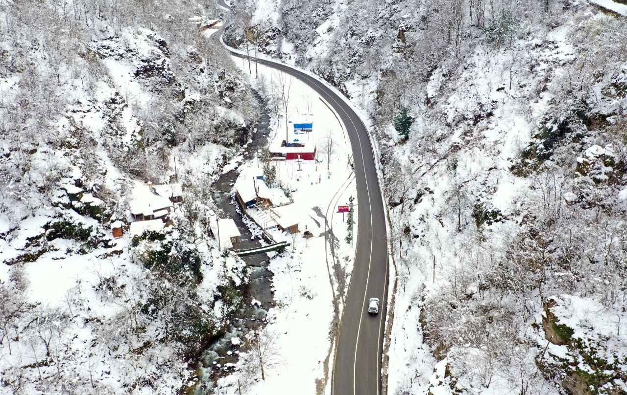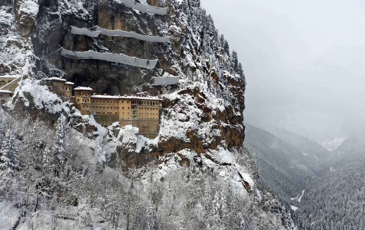 Sümela Manastırı ve Altındere Vadisi'ndeki kar manzaraları havadan görüntülendi.