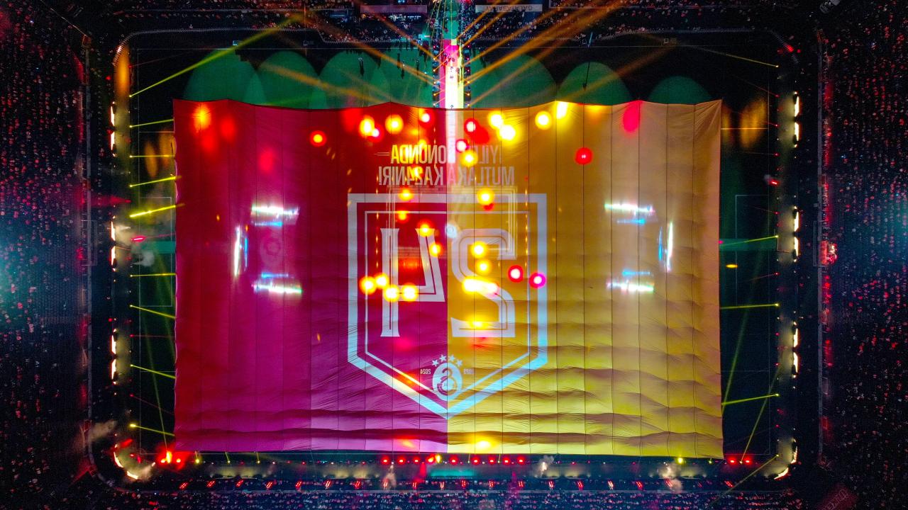 Gösterinin sonunda stadın üzerinde 24. şampiyonluk bayrağı açıldı.