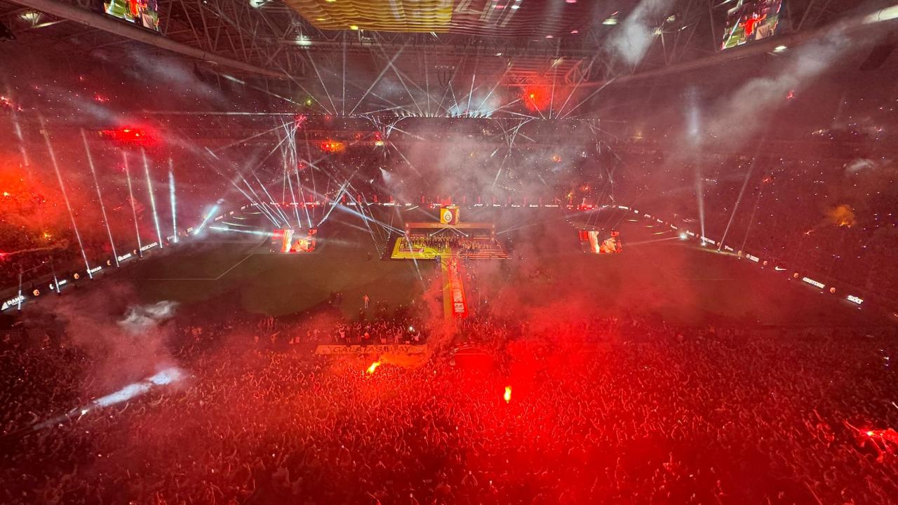 Dronlar ile RAMS Park`ın üzerinde önce, "Şampiyon Galatasaray" ve "Tek büyük Galatasaray" yazıları oluşturuldu. Ardından ellerini kulaklarına götürerek gol sevinci yapan Mauro Icardi`nin figürü ve futbol topu çizildi. Son olarak da "Yer sarı, gök kırmızı" ve "İyiler sonunda mutlaka kazanır" sloganları yazıldı.