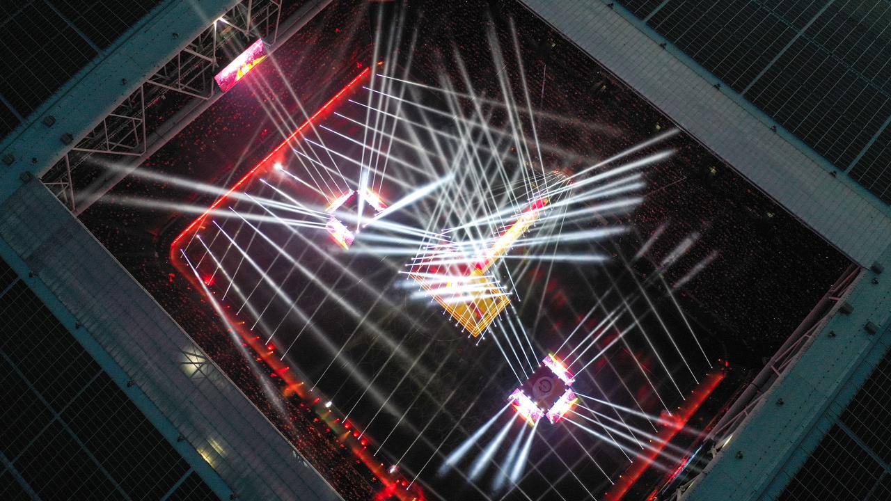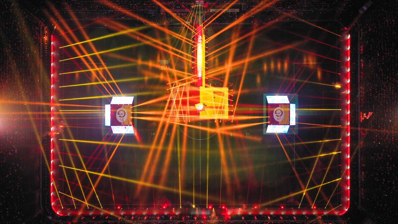Stat içinde kurulan dev sahne etrafında beğeni toplayan bir ışık şovuna da imza atıldı. Erkek futbol takımının kazandığı kupaların törenine geçildiği sırada devreye dronlar girdi.