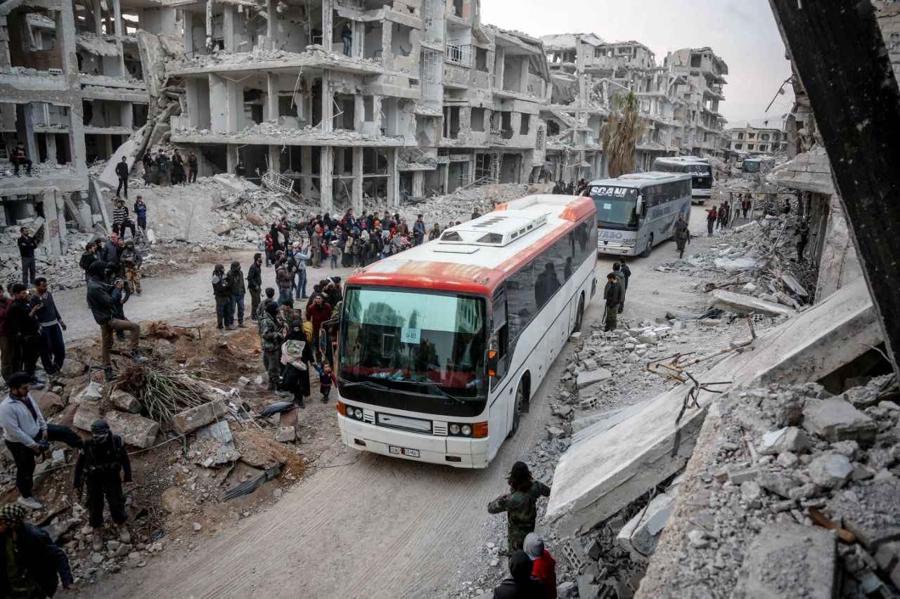 14 Mart- 24 Nisan 2018: Doğu Guta'dan zorunlu tahliyeler yapıldı. Bölge rejimin eline geçti.