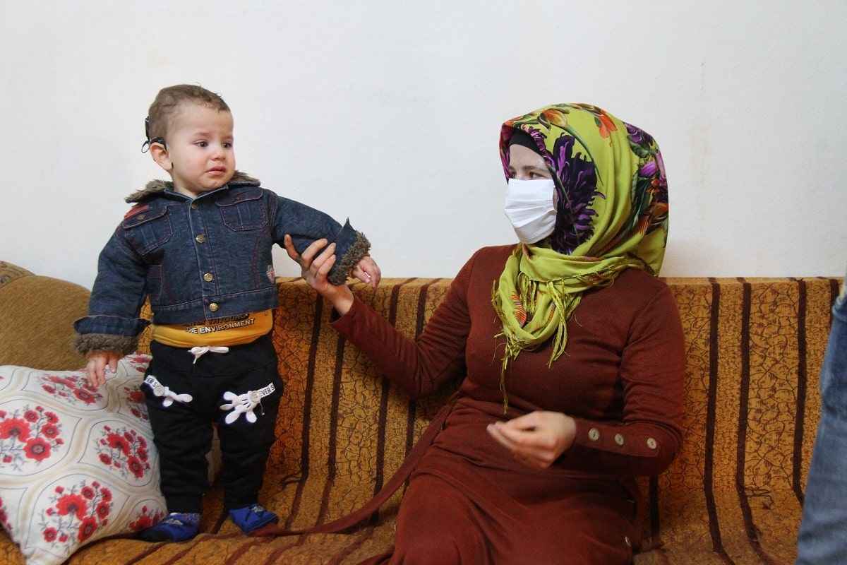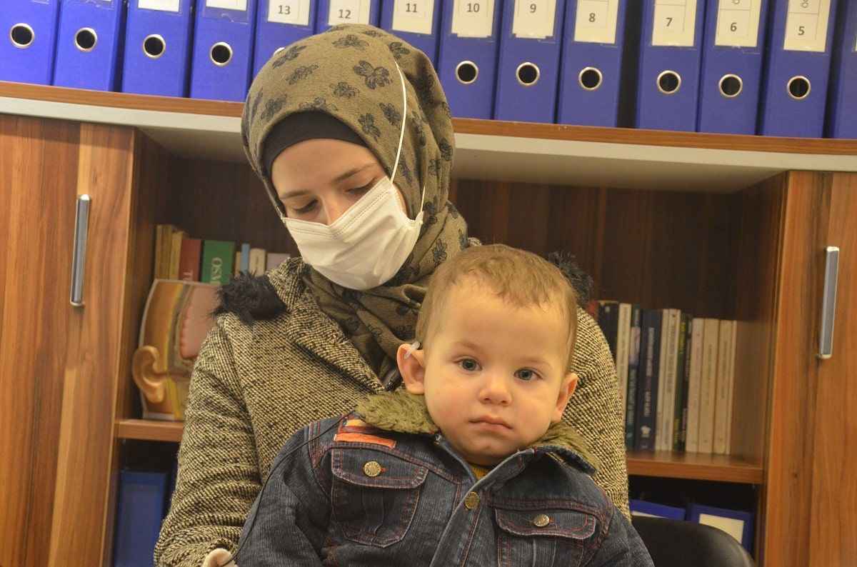 Kahramanmaraş'ta yaşayan Suriyeli Feyiz ve Ahlem Arab çiftinin 20 ay önce işitme engelli olarak dünyaya gelen çocukları Emir, uzatılan yardım eliyle takılan biyonik kulak sayesinde aylar sonra ilk kez duydu.