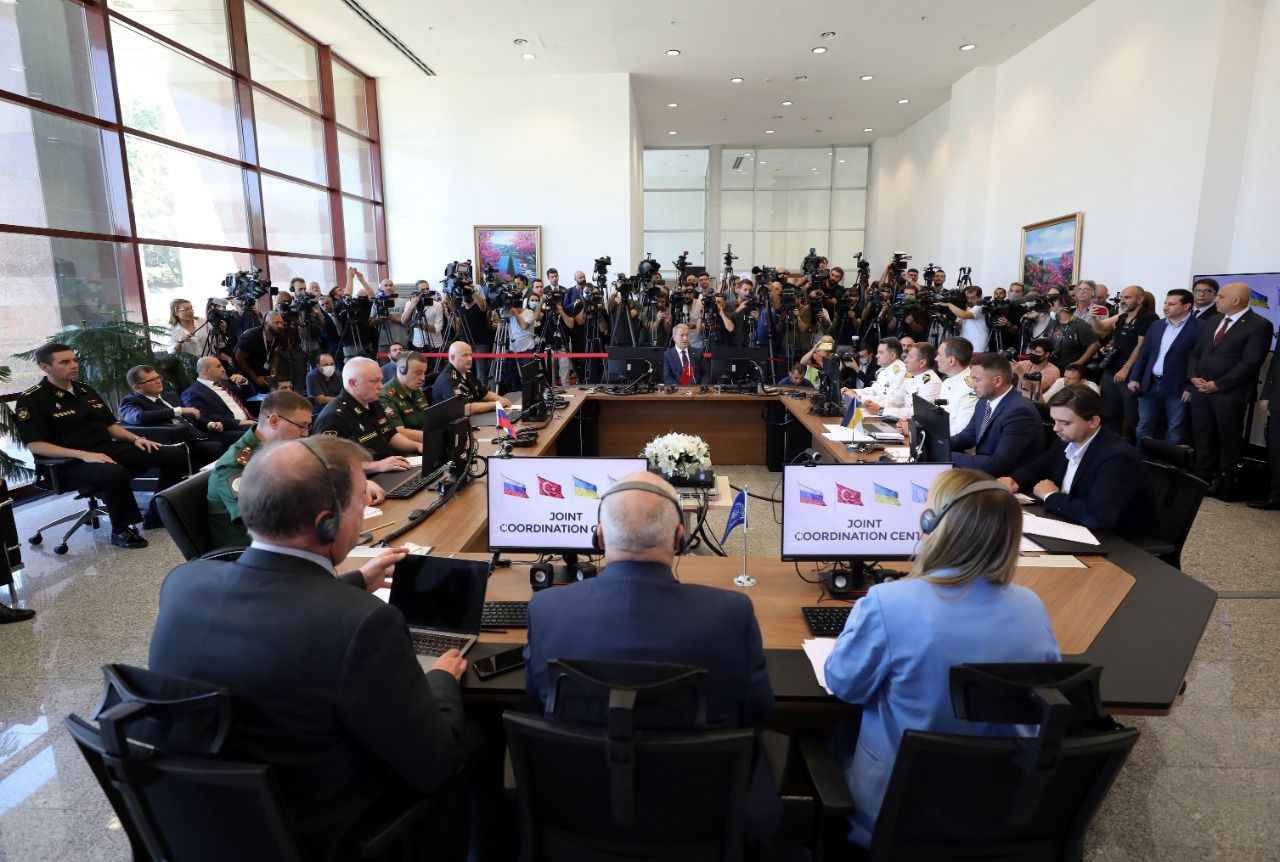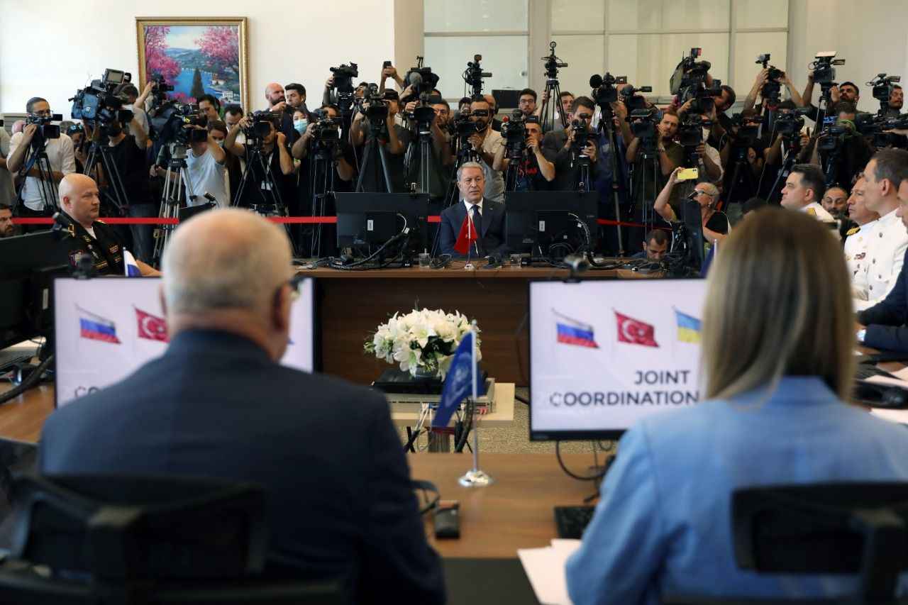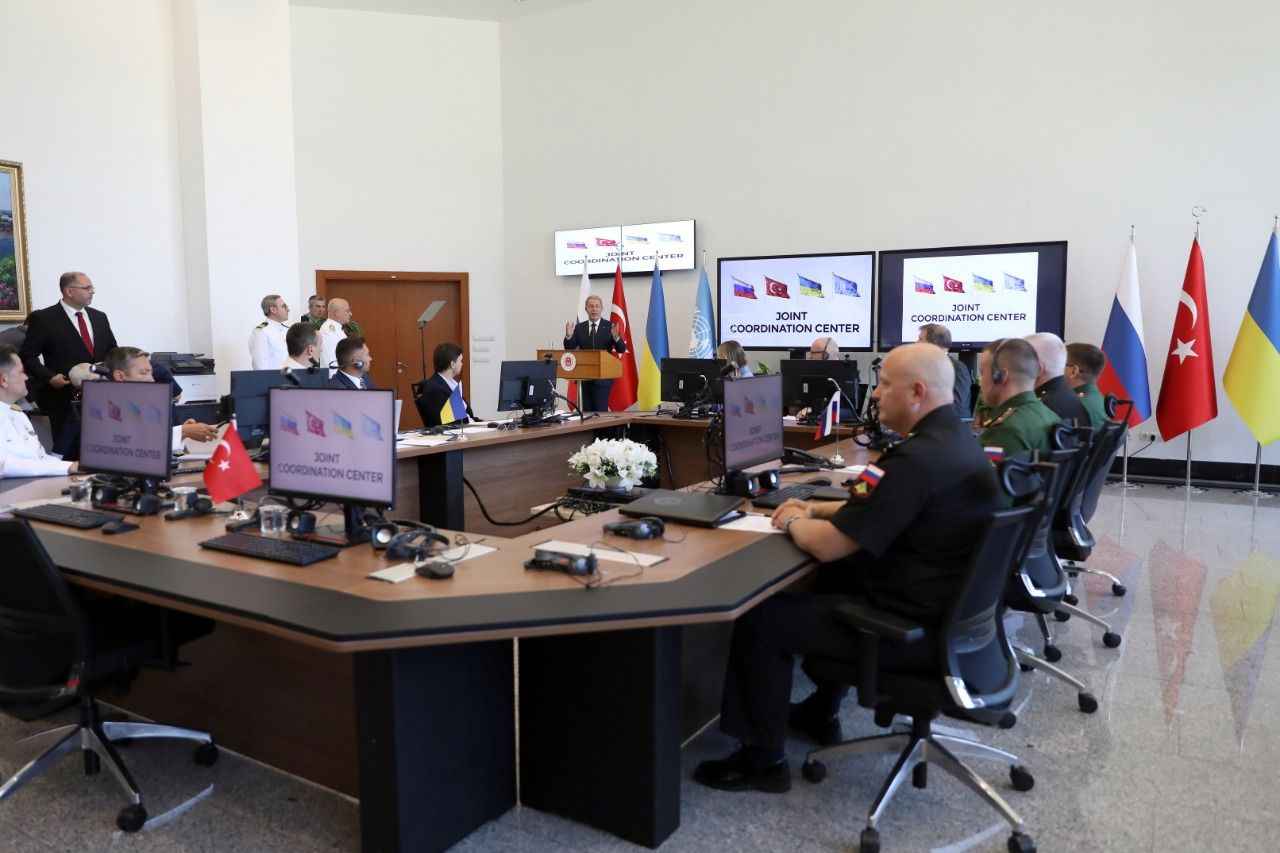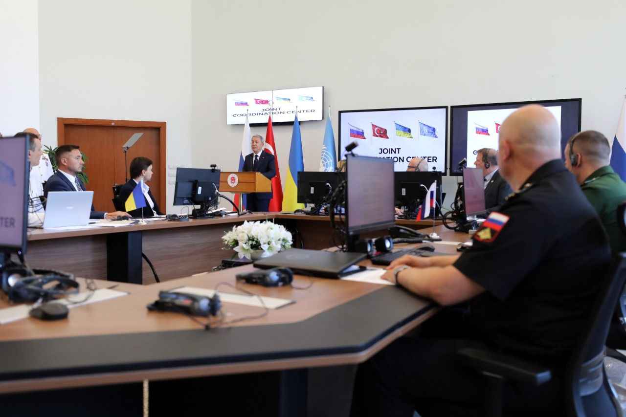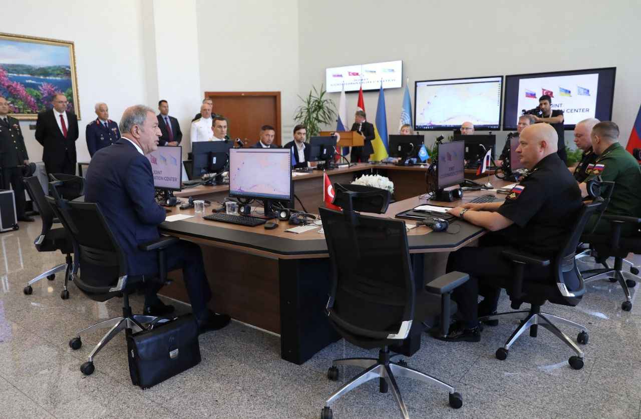 Tahıl koridoru anlaşması kapsamında oluşturulan Müşterek Koordinasyon Merkezi, Milli Savunma Bakanı Hulusi Akar'ın katılımıyla Milli Savuma Üniversitesi'nde açıldı.