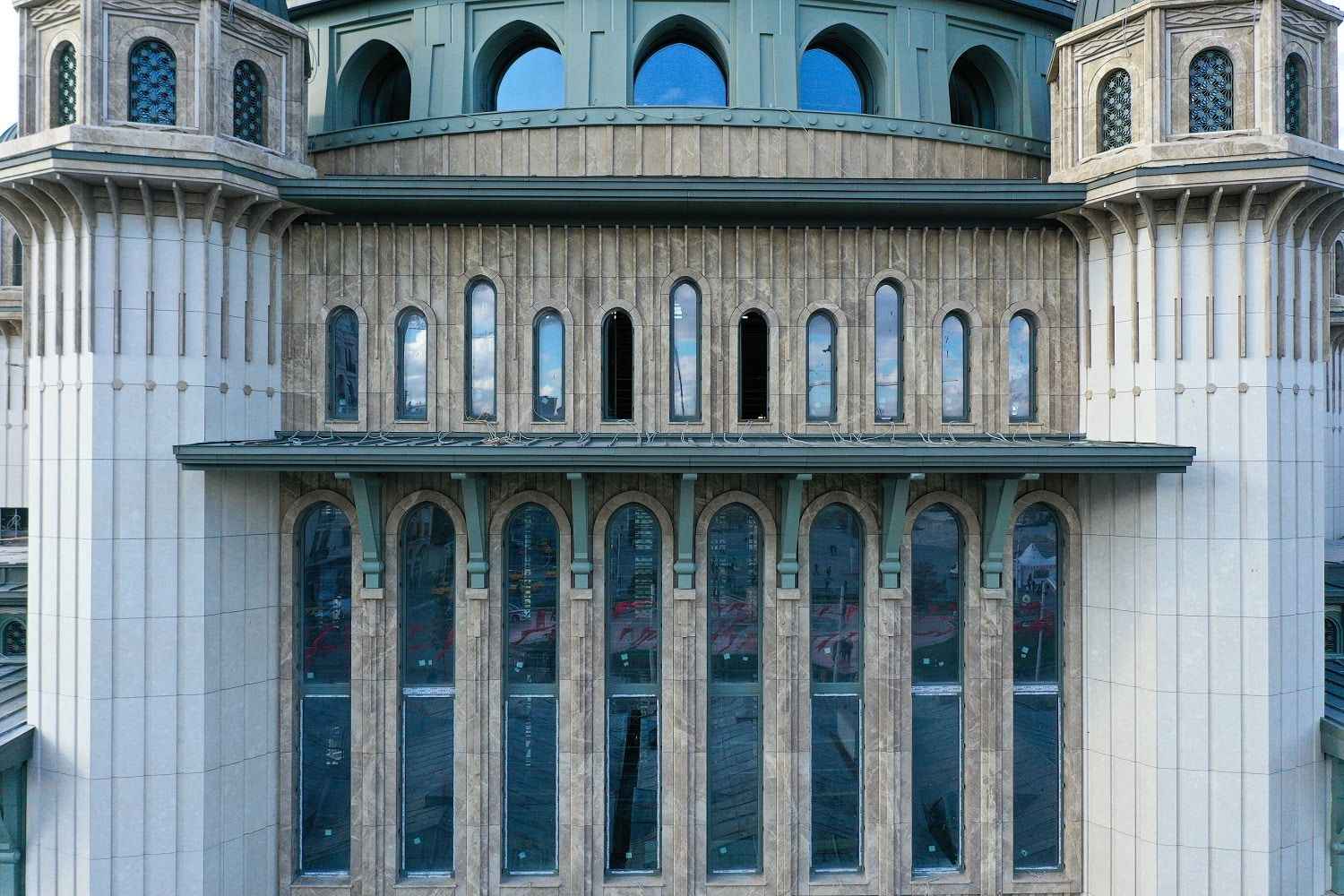 Yapının dekorasyon işlemlerinin yanı sıra zemin ile birinci kat prekast imalatları ile pencere prekast çalışmaları da sürüyor. Caminin ana kubbe prekast montajı ise sona erdi.