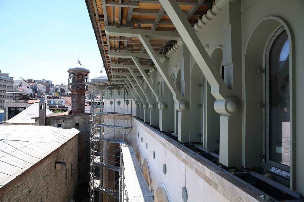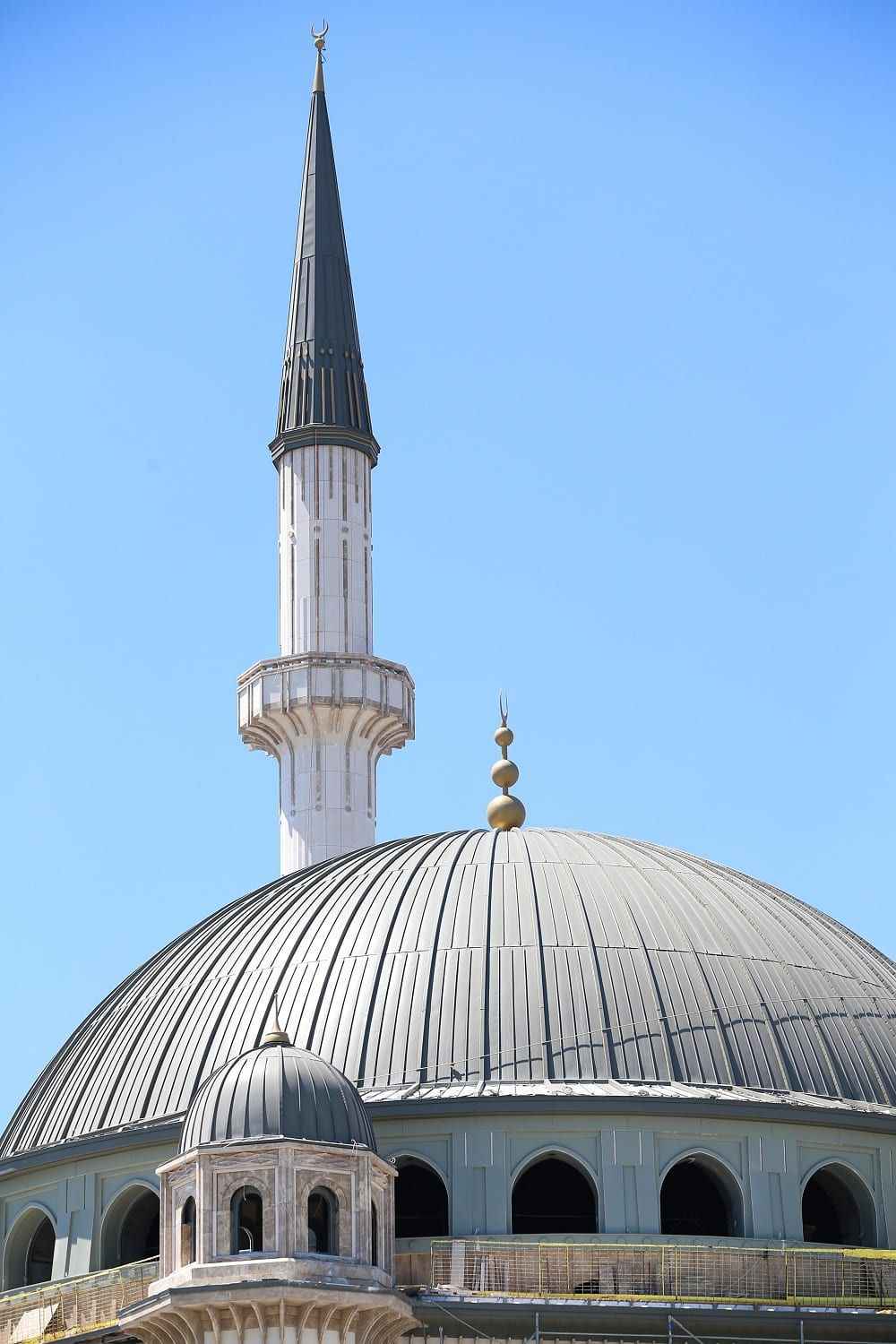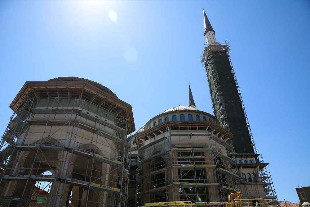 Öte yandan 61 metre yüksekliğindeki 2 minarede çalışmalar tamamlanıyor. Minarelerde bulunan 4 şerefenin 2'si tamamlandı. Şerefelerin tamamlanmasının ardından minarelere kurulan iskele de sökülecek.