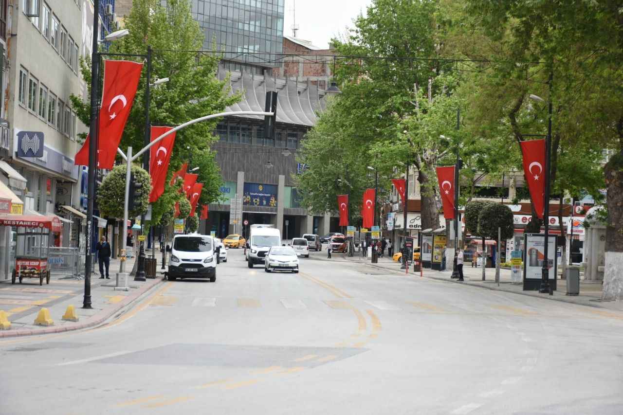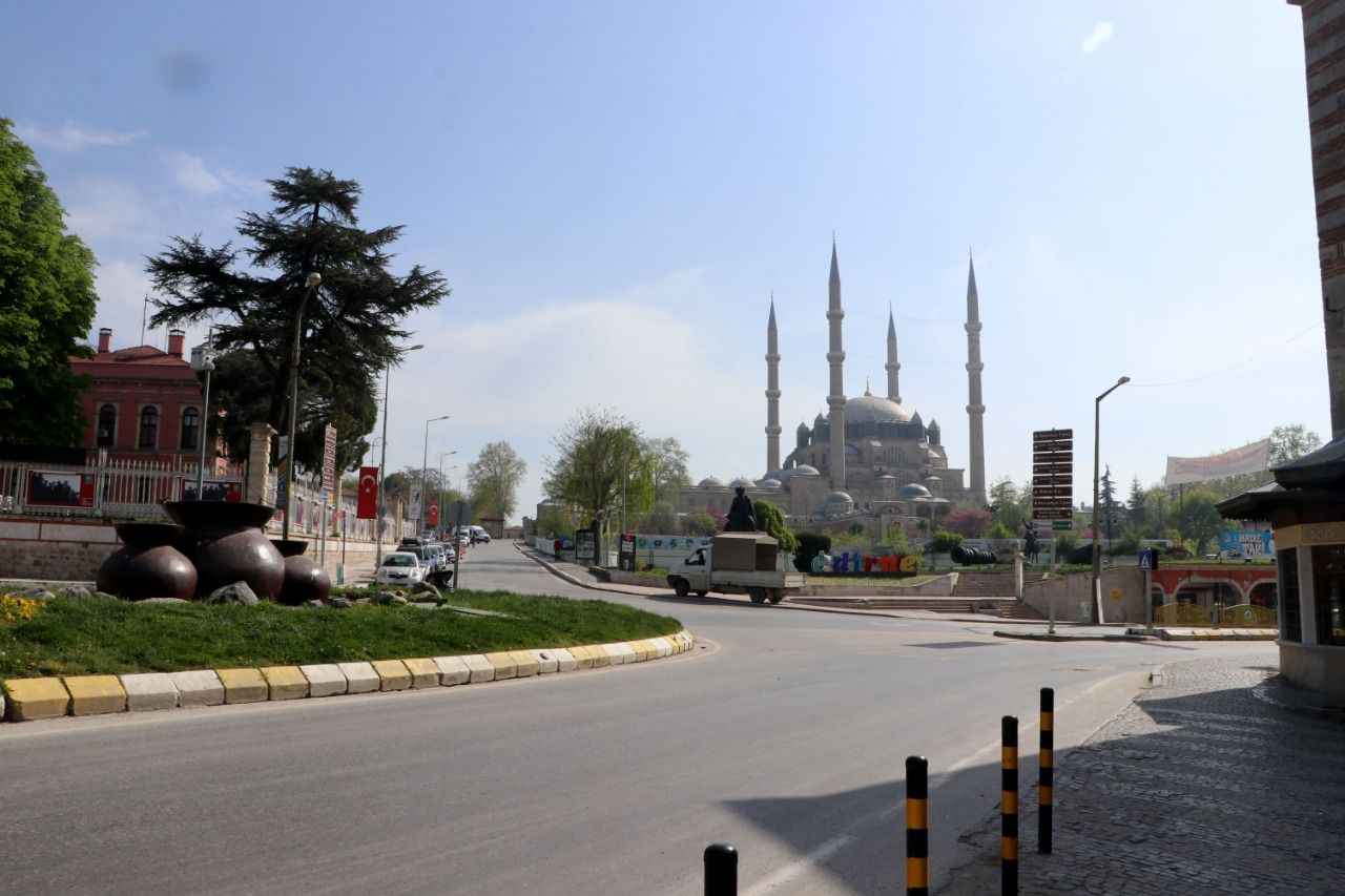 Edirne'de, yeni tip koronavirüsle (Kovid-19) mücadele tedbirleri kapsamında uygulanan tam kapanma süreci nedeniyle cadde ve sokaklarda sessizlik hakim.
