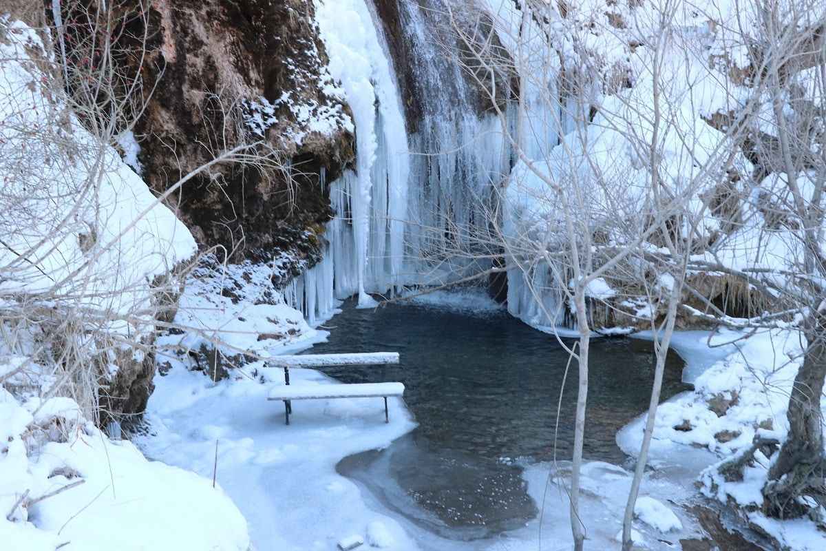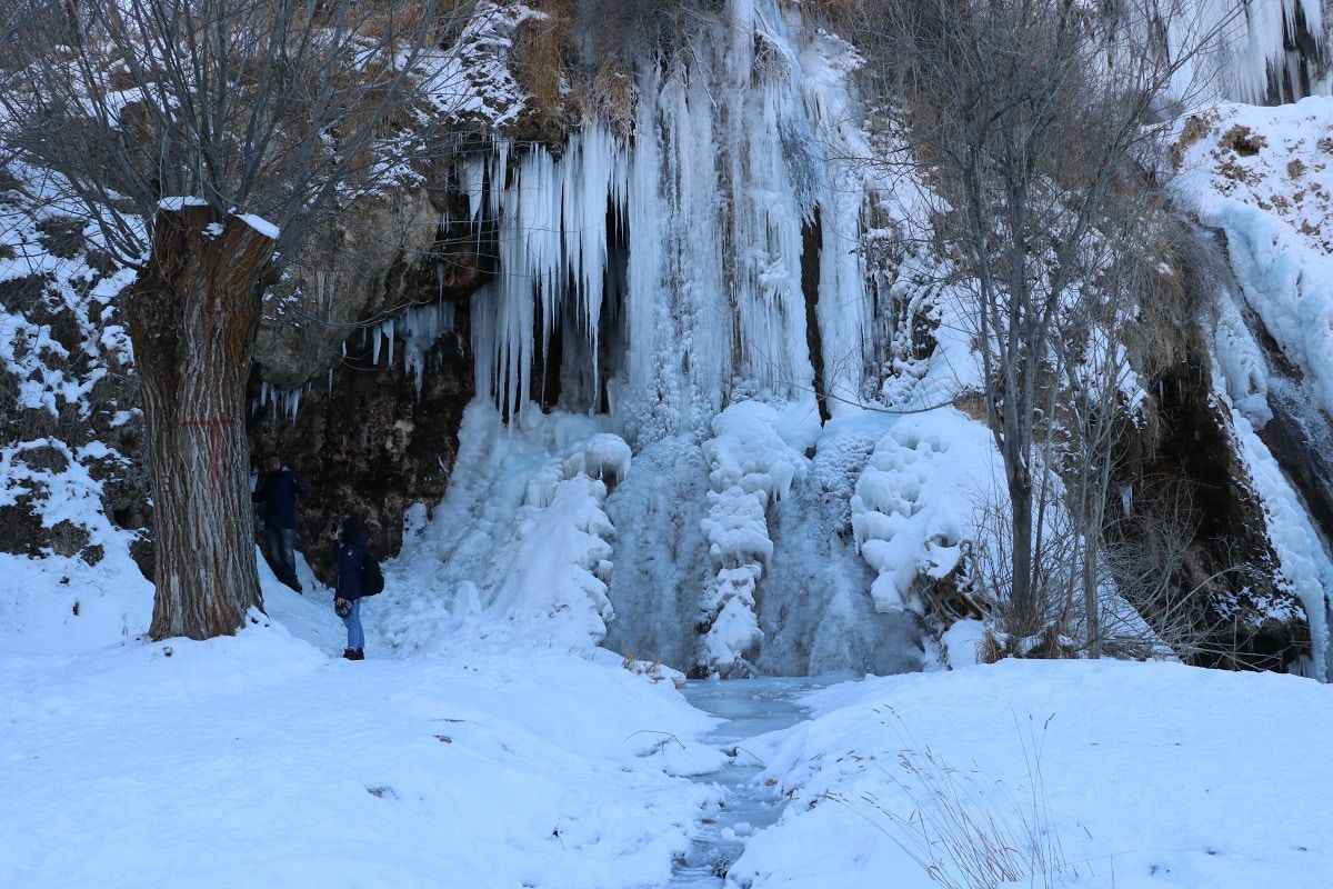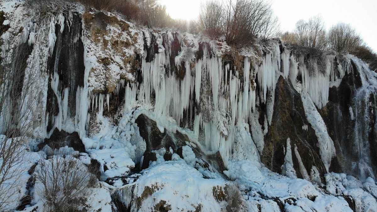 Hava sıcaklığının gece sıfırın altında 18 dereceye kadar düştüğü kente yaklaşık 30 kilometre uzaktaki Çağlayan beldesinde bulunan Girlevik Şelalesi, tamamen dondu.
