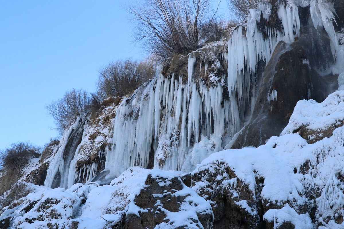 Ziyaretçilerine her mevsim ayrı güzellik sunan şelalede oluşan 6-7 metrelik buz sarkıtları, seyrine doyumsuz manzara ortaya çıkardı.