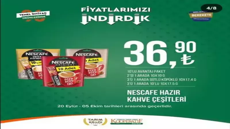 Tarım Kredi Kooperatif Market'lerde 15 gün sürecek özel indirim başladı! Yoğurt ve kahvede büyük indirim