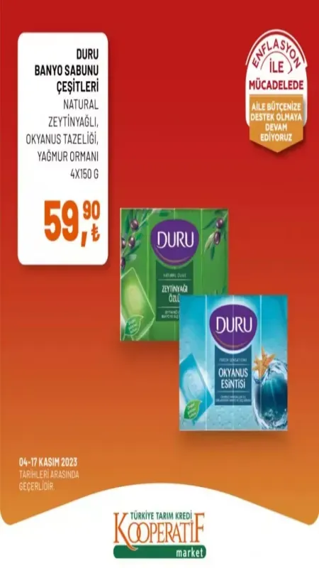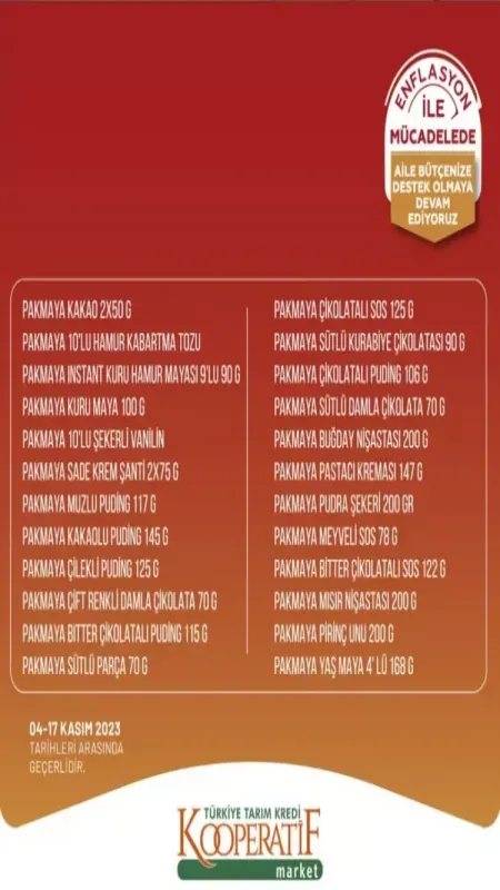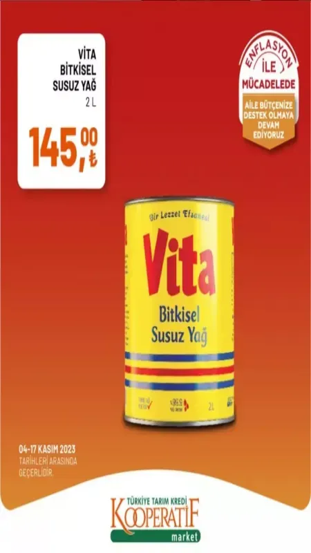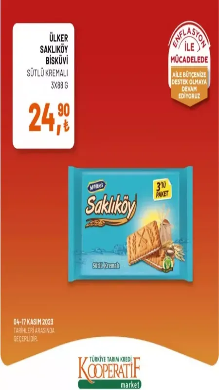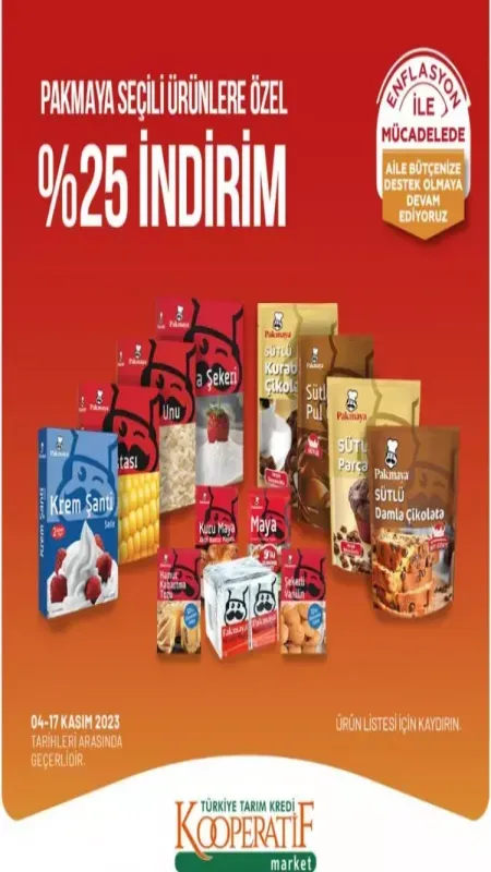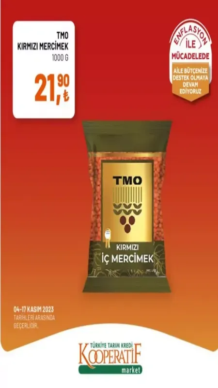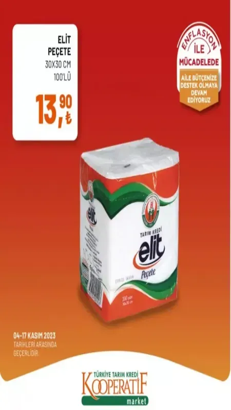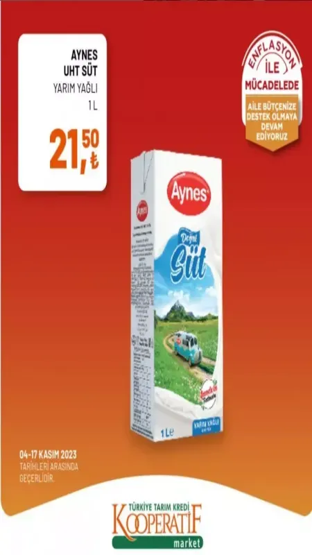 Tarım Kredi Kooperatif Market'lerde 4-17 Kasım tarihlerini kapsayan dönemde büyük indirim başladı.