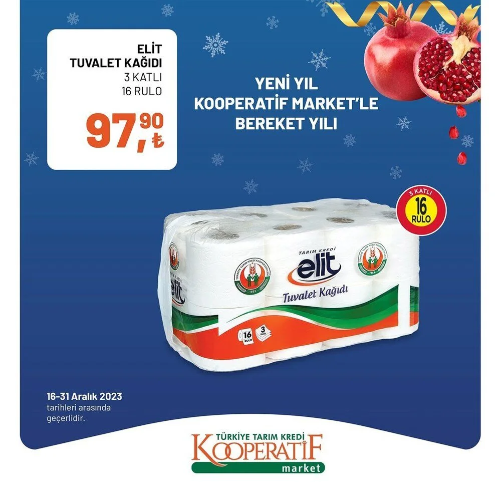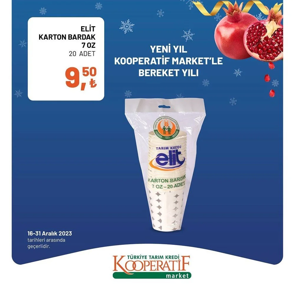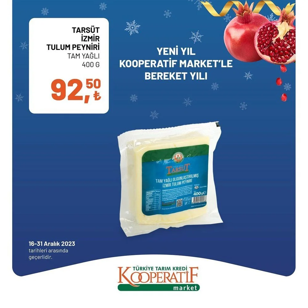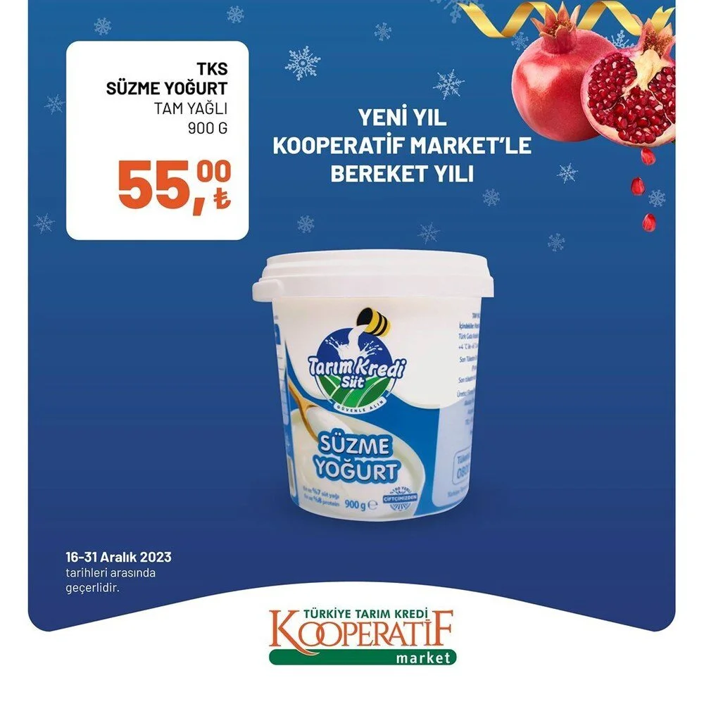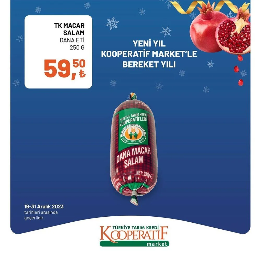 2023''ün bitmesine 2 gün kala Tarım Kredi Market Aralık ayı sonuna özel son iki günlük büyük indirime gitti. İşte indirimli ürünlerin listesi.