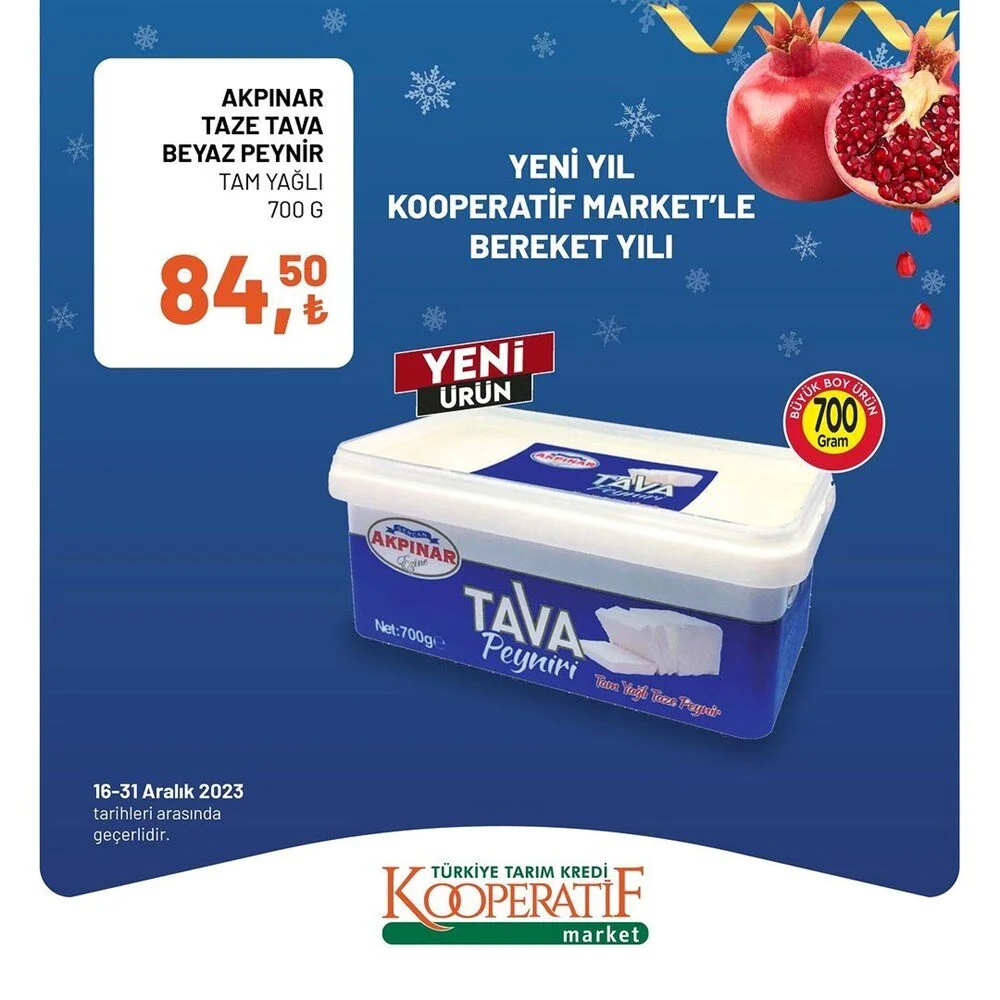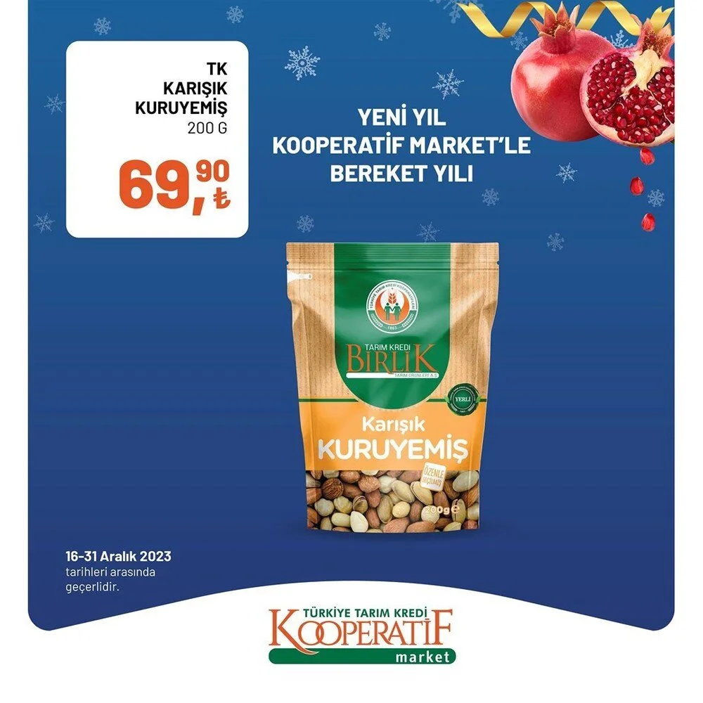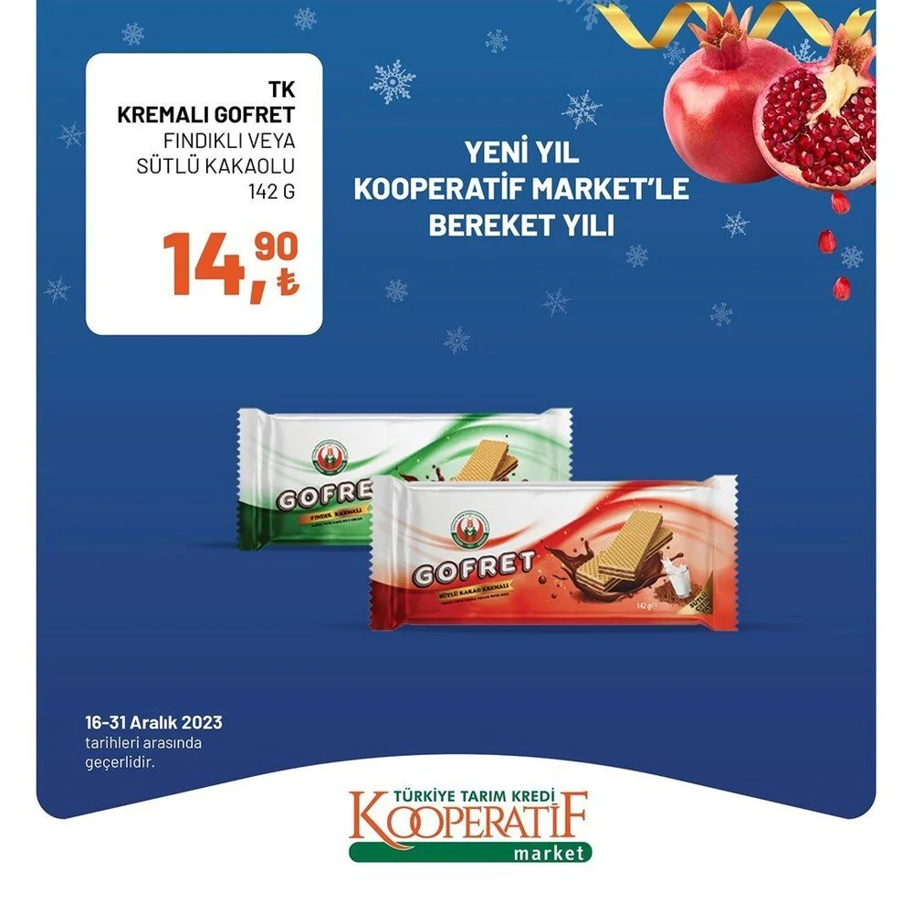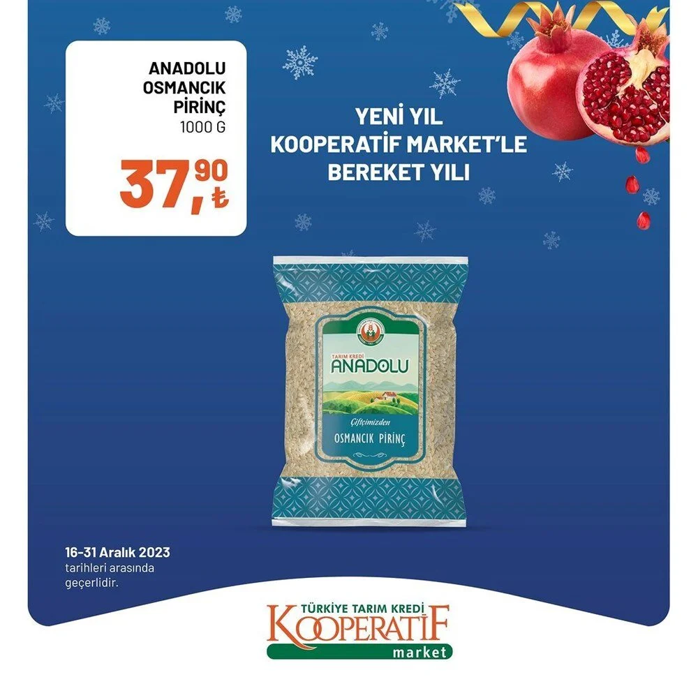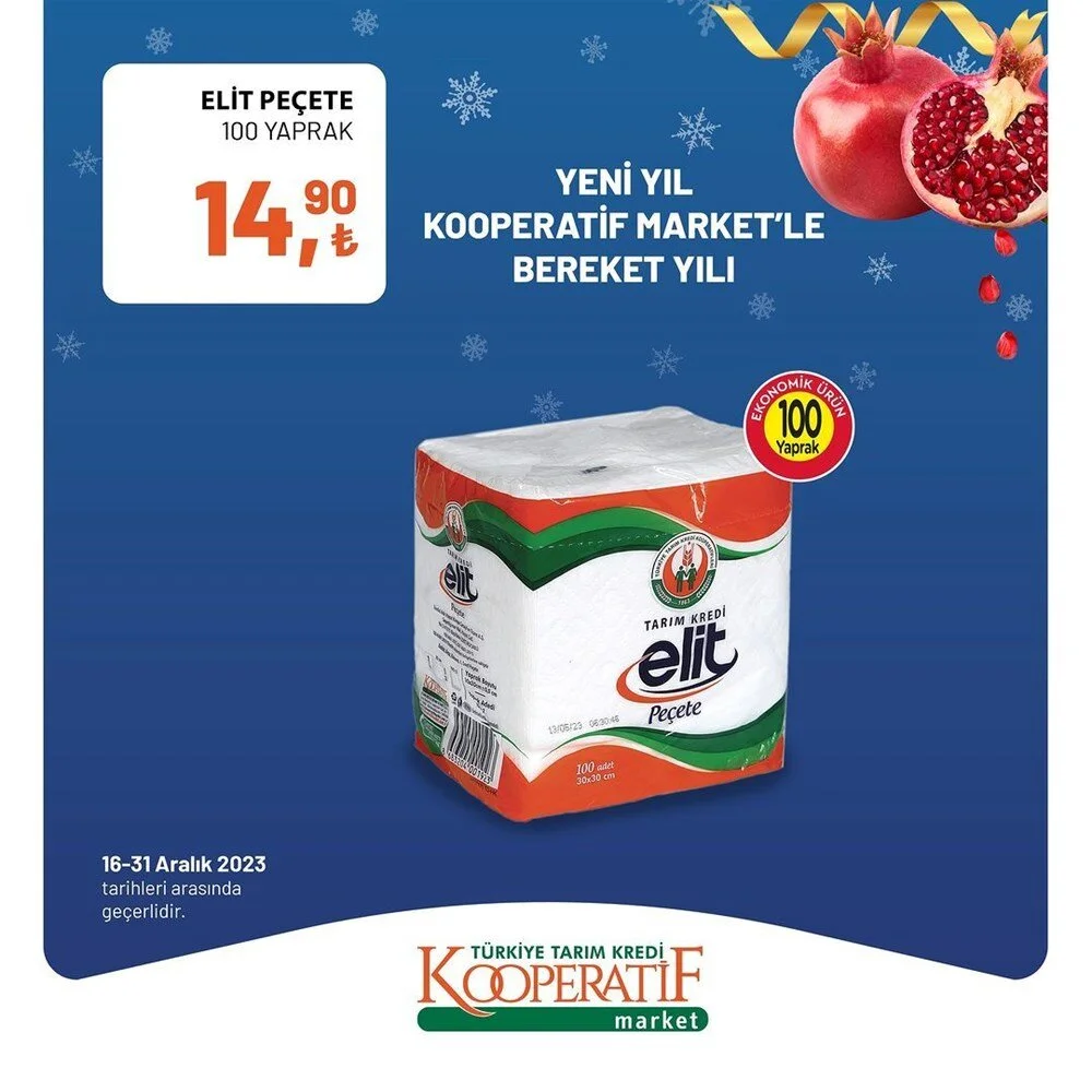 2023''ün bitmesine 2 gün kala Tarım Kredi Market Aralık ayı sonuna özel son iki günlük büyük indirime gitti. İşte indirimli ürünlerin listesi.