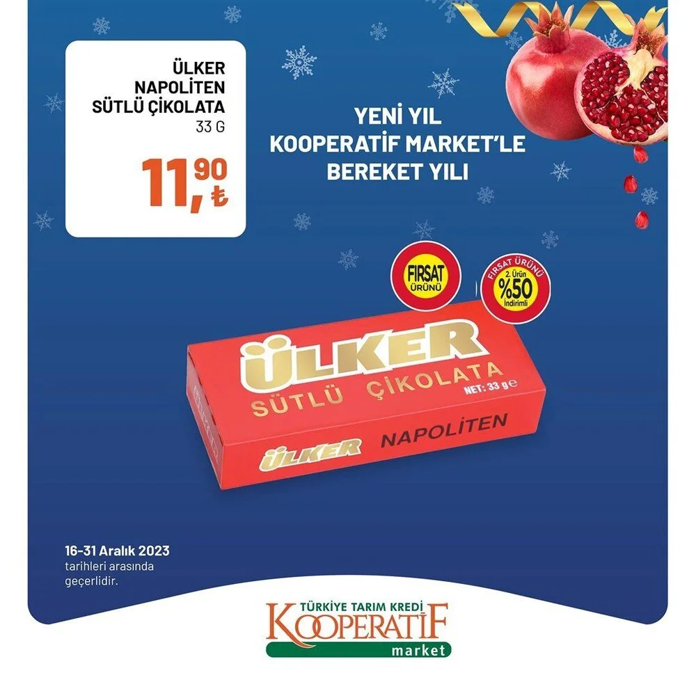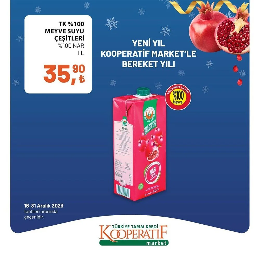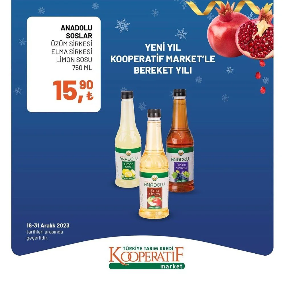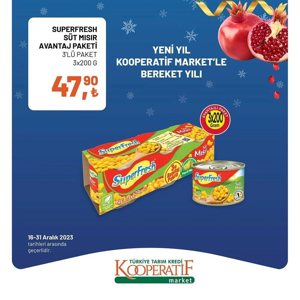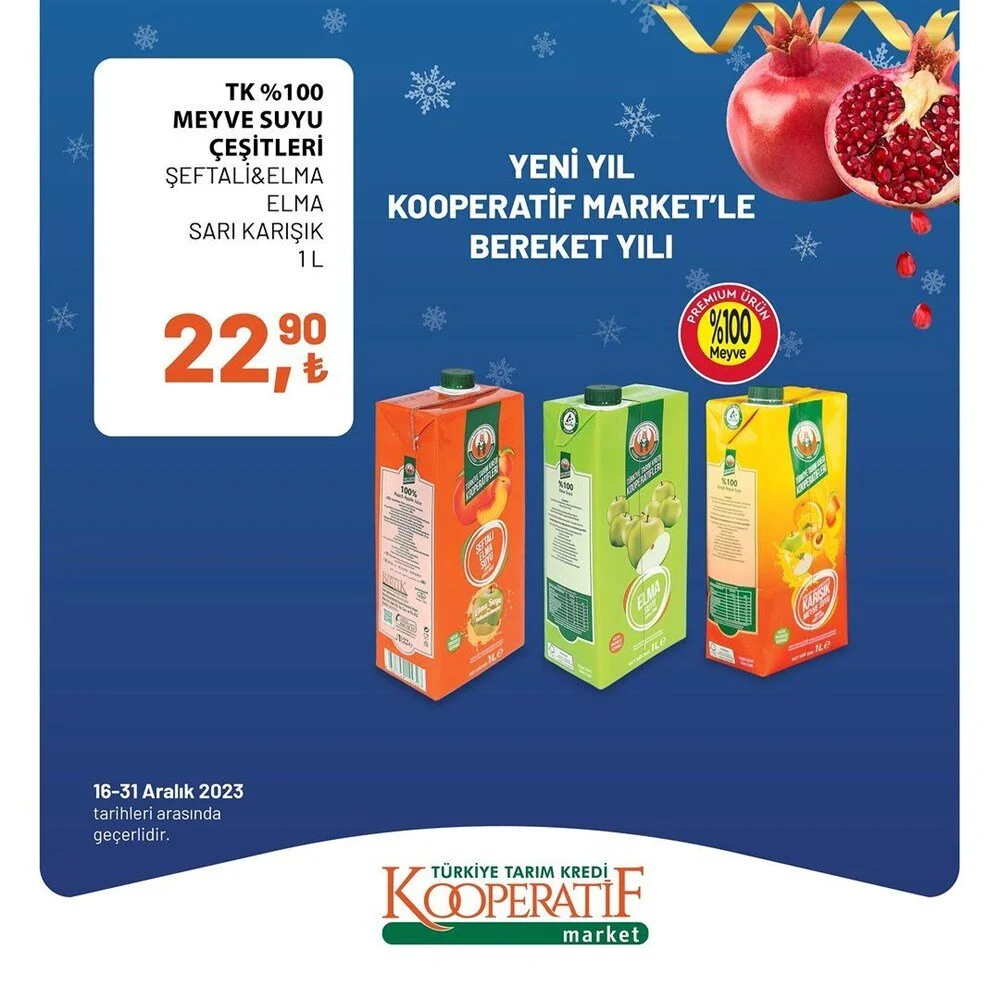 2023''ün bitmesine 2 gün kala Tarım Kredi Market Aralık ayı sonuna özel son iki günlük büyük indirime gitti. İşte indirimli ürünlerin listesi.