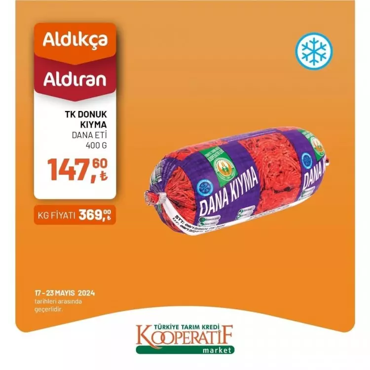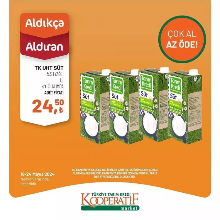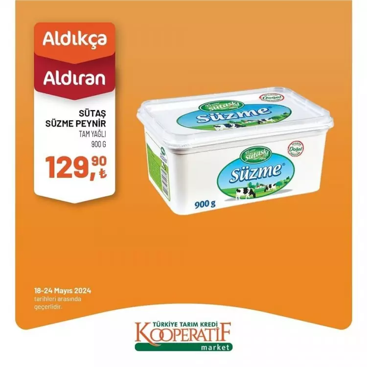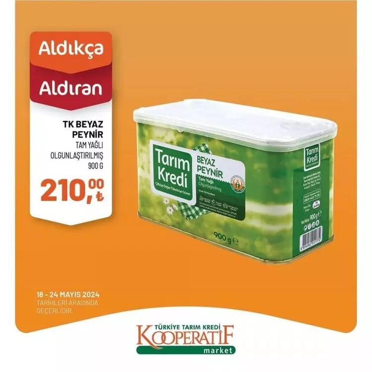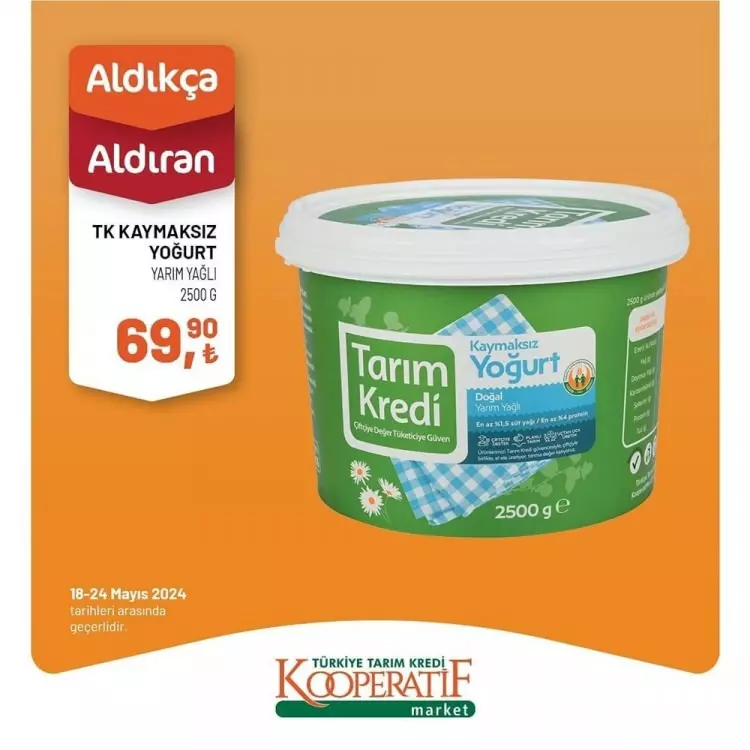 Tarım Kredi Kooperatif Marketleri, 18-24 Mayıs tarihlerine özel yeni indirimli ürünler listesini sosyal medya hesabından duyurdu. Kıyma, tavuk, mercimek, salam, sosis, sucuk, peynir, süt, zeytin, yoğurt, çamaşır deterjanı ve kağıt havlu gibi birçok temel ihtiyaç ürününe mayıs ayına özel yeni indirimler yapıldı.