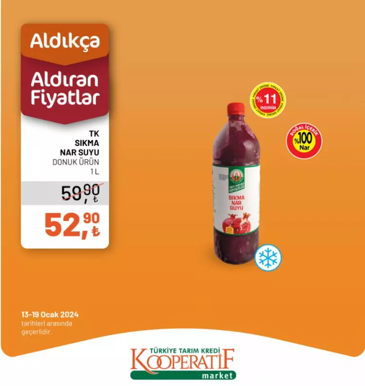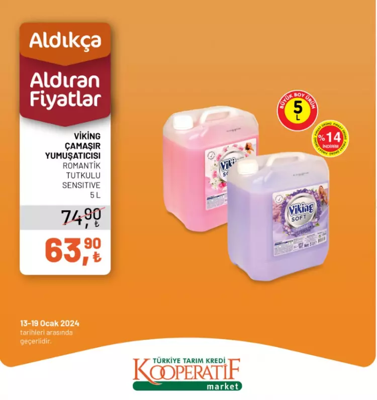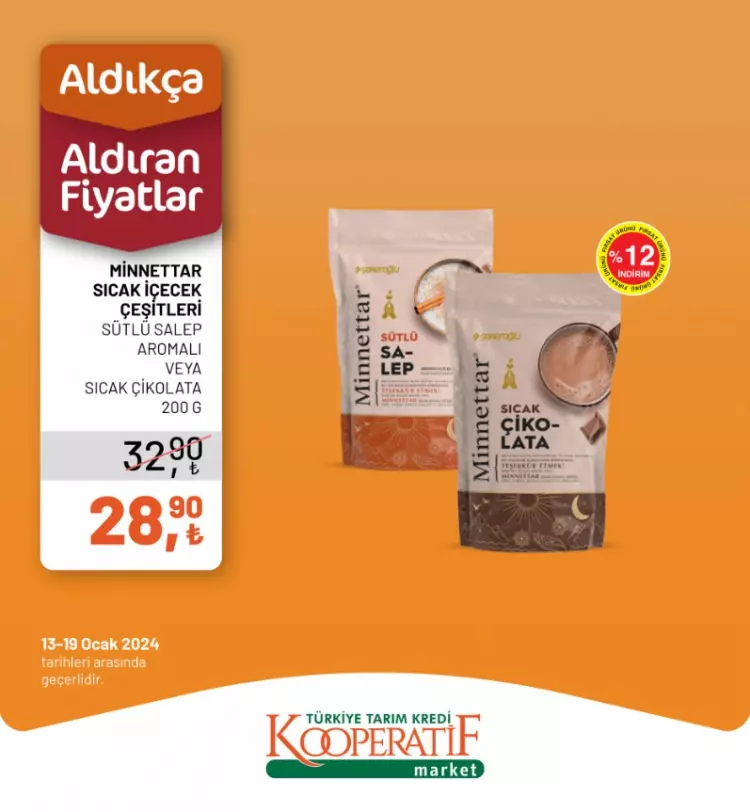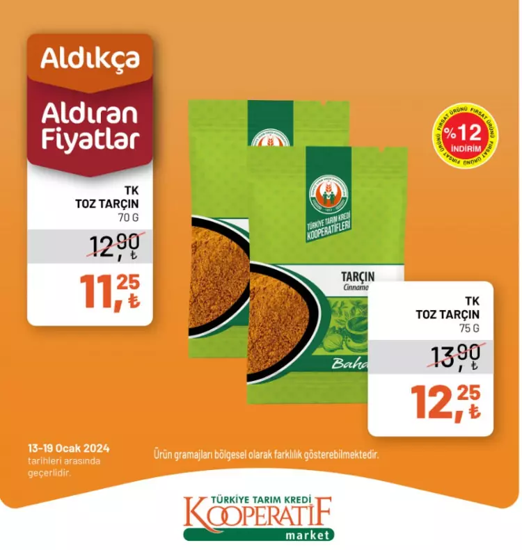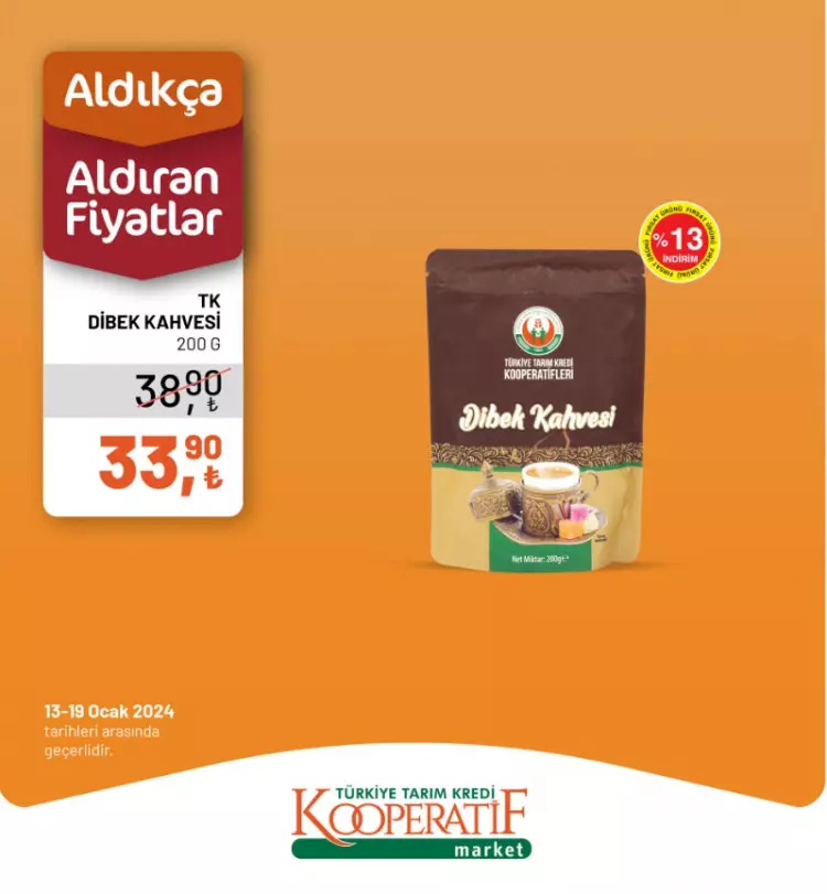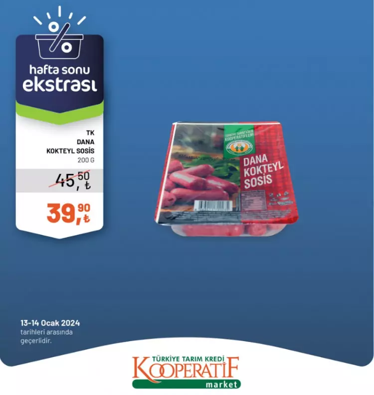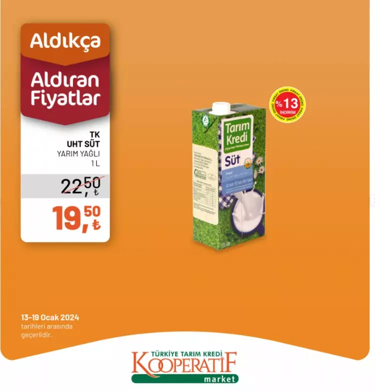Tarım Kredi Kooperatif Marketleri yeni yılın ilk indirimlerini duyurdu. 13-14 Ocak tarihlerine özel yeni indirimli ürünler listesini sosyal medya hesabından paylaştı.