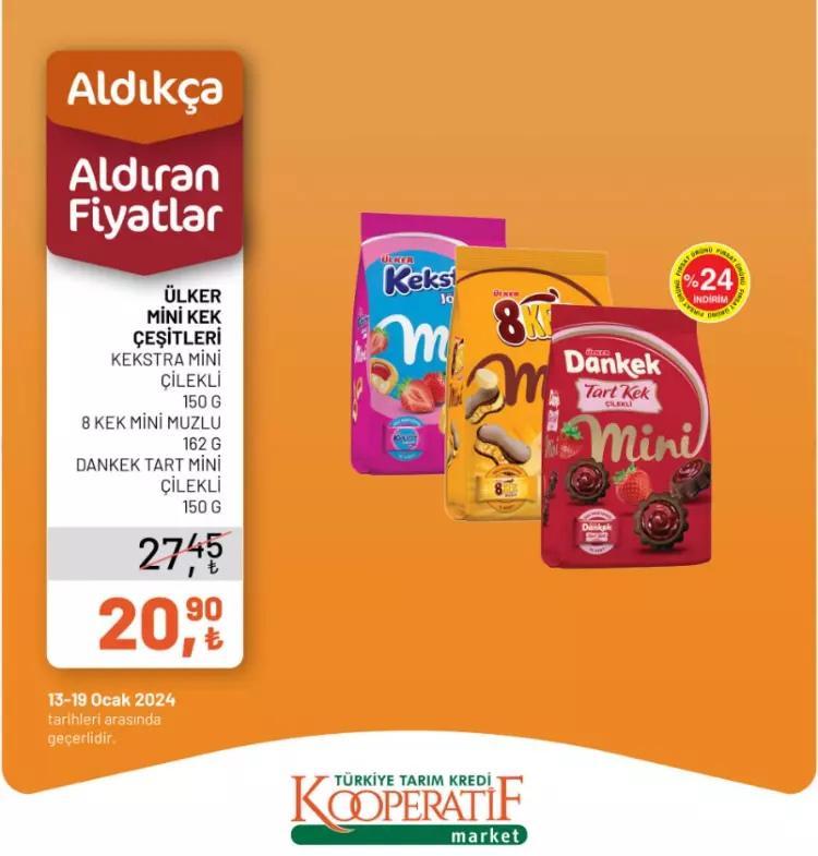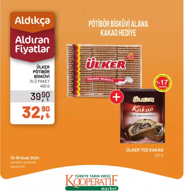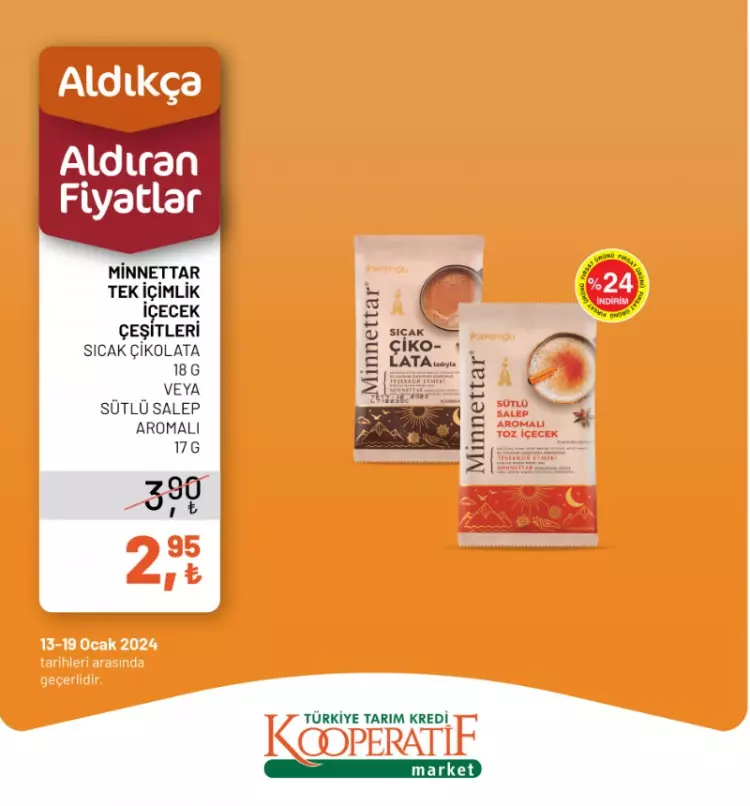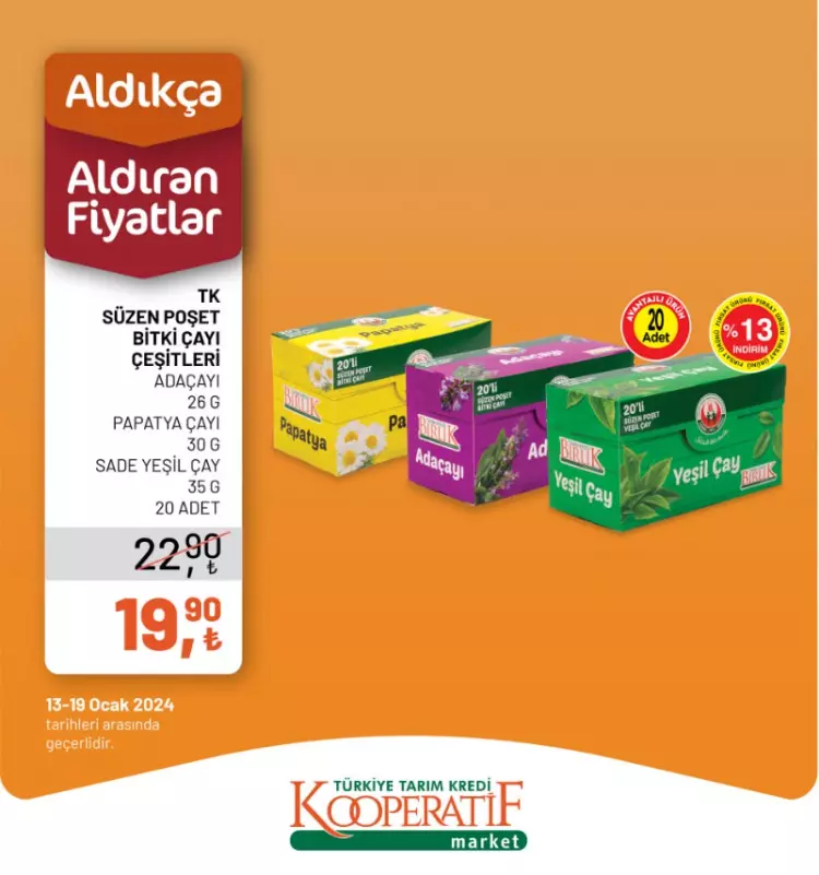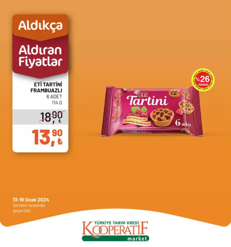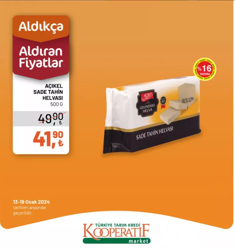 Tarım Kredi Kooperatif Marketleri yeni yılın ilk indirimlerini duyurdu. 13-14 Ocak tarihlerine özel yeni indirimli ürünler listesini sosyal medya hesabından paylaştı.