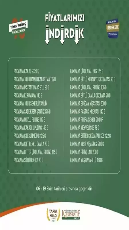 Tarım Kredi marketlerinde hangi ürünler indirimde? İşte 6-19 Ekim fiyatları