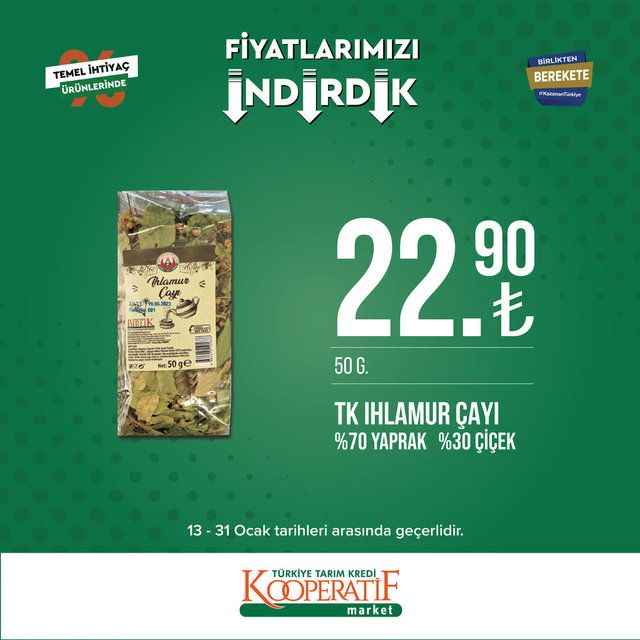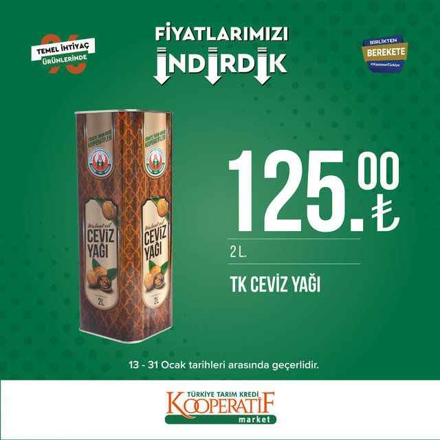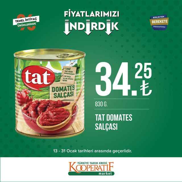 Tarım Kredi Kooperatif Marketleri'nde Ocak ayına özel güncel indirimli ürünler listesi yayınlandı.